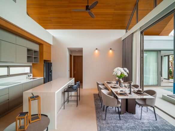 Tucked away in Cherngtalay, Thalang District, along Pasak Soi 8, these villas are mere minutes from Phuket’s pristine beaches. Bang Tao and Layan beaches are just a 10-minute drive, offering golden sands and azure waters for endless relaxation. The area boasts elite infrastructure, including world-class beach clubs, gourmet restaurants, and shopping havens like Boat Avenue and Porto de Phuket.