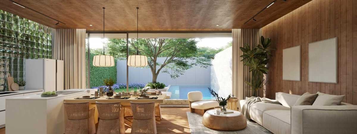 The project offers affordable Three Bedroom Pool villas with tastefully decorated in the tropical Asian fusion style from natural materials and high quality finishing throughout, and also its own private pool with terrace.