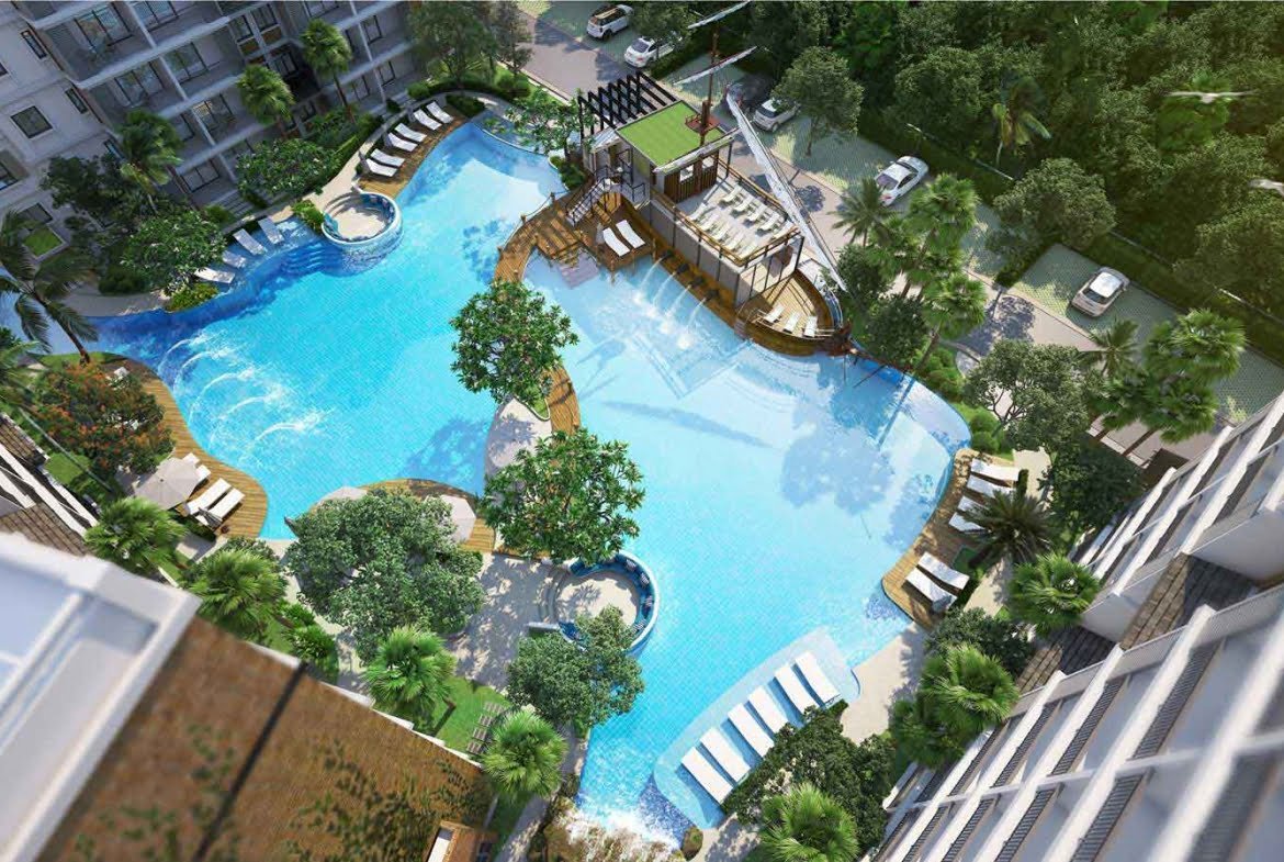 The Project consists of seven different seven-storey buildings located on a large land plot and surrounded by beautiful green areas. There are five large swimming pools at ground level in the gardens for all guests and residents to enjoy as well as a Sky Pool. Other on-site facilities include a fully-equipped fitness centre, a sauna, pool for kids.