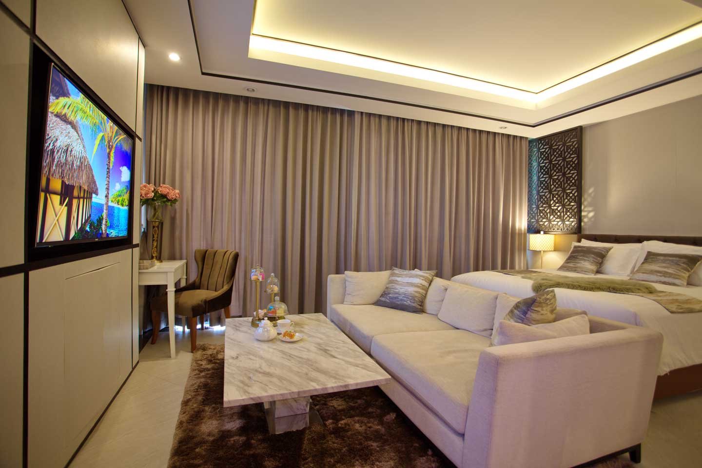 This luxury Studio Apartment is part of a new high-end Residence nestled in a lush tropical environment just a short walking distance to two of Phuket’s most spectacular beaches, Surin Beach and Bangtao Beach.