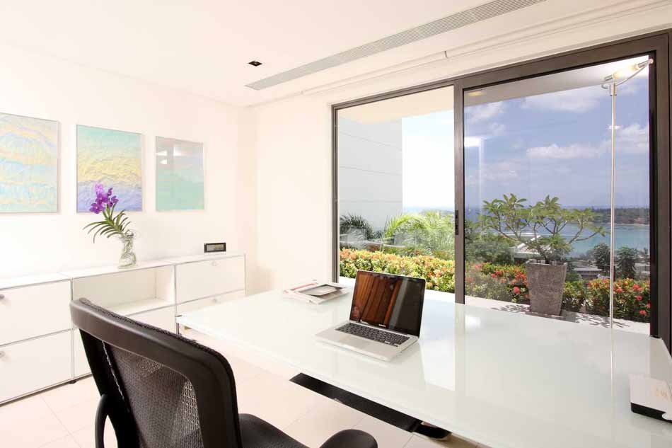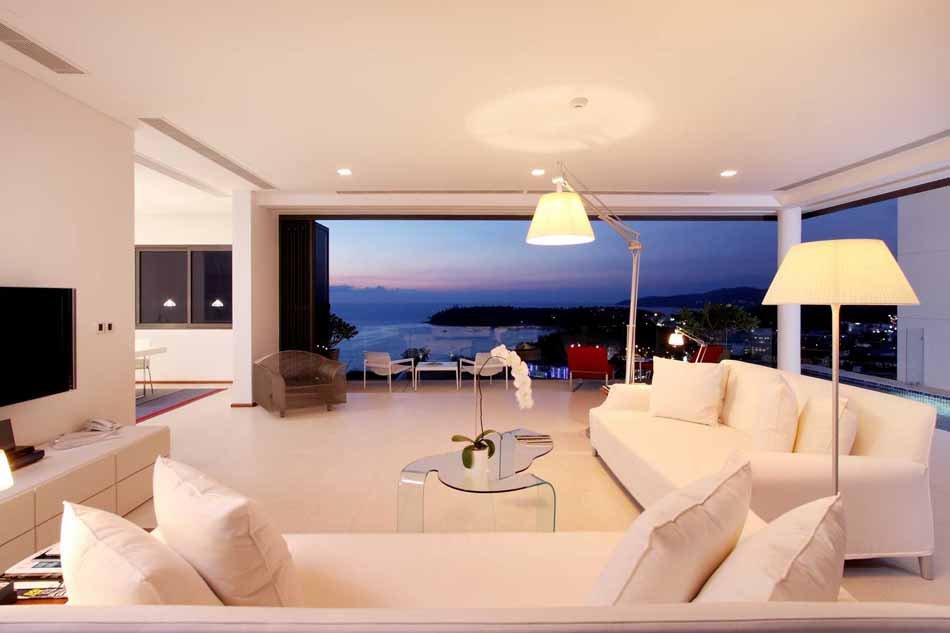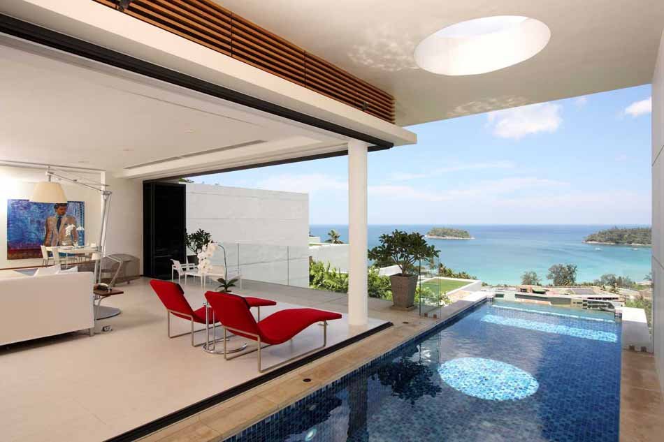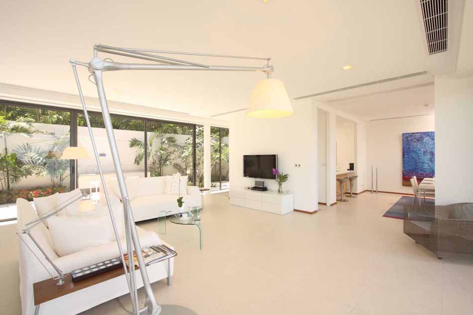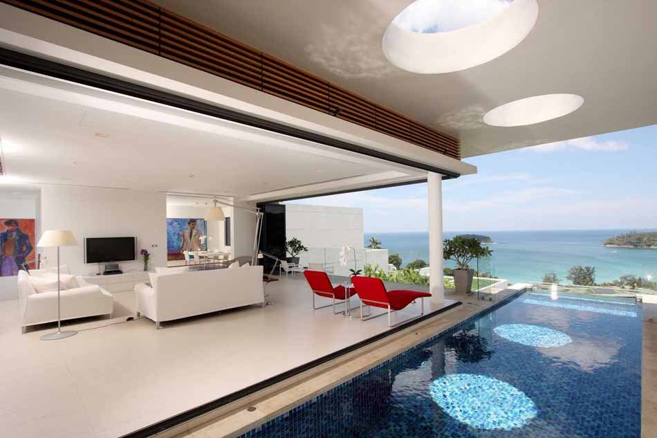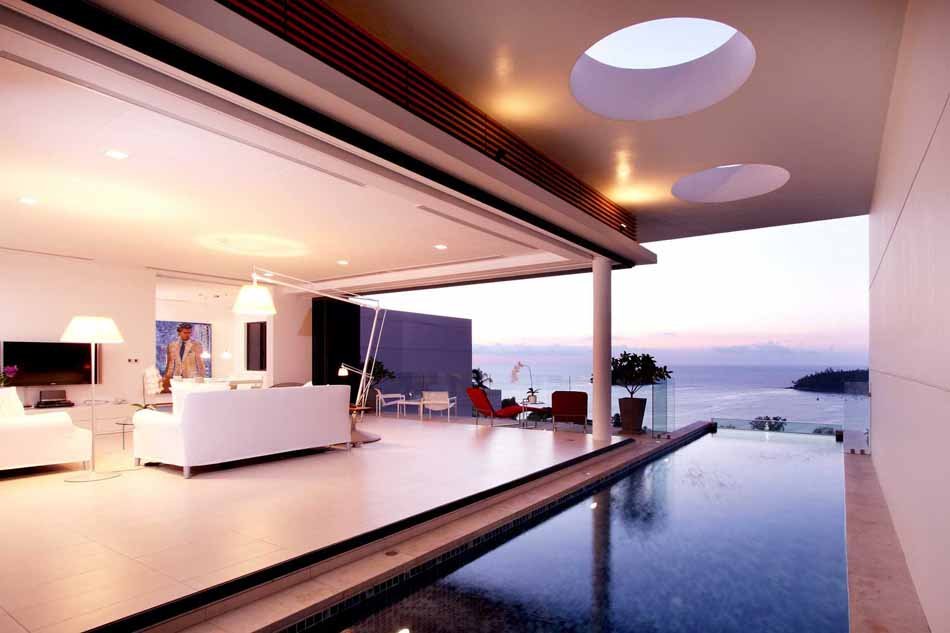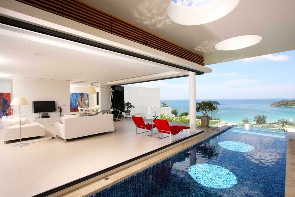 A contemporary classic. A penthouse apartment with panoramic ocean views, large open terraces, expansive living areas, and the seamless spillover of indoor into outdoor spaces; reflect the modern-Asian design of the site.