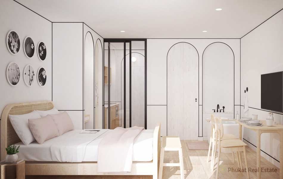This modern studio is part of a new condominium project located in the trendy area of Bangtao, in short distance to the large white sand beach.