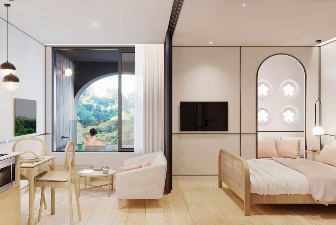 The Japanese style 1 -bedroom apartment is part of a new condominium project located in the trendy area of Bangtao, in short distance to the large white sand beach.