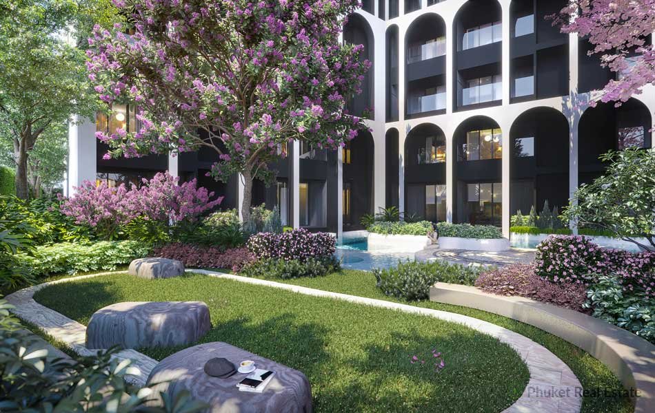 The Japanese style 2-bedroom apartment is part of a new condominium project located in the trendy area of Bangtao, in short distance to the large white sand beach.