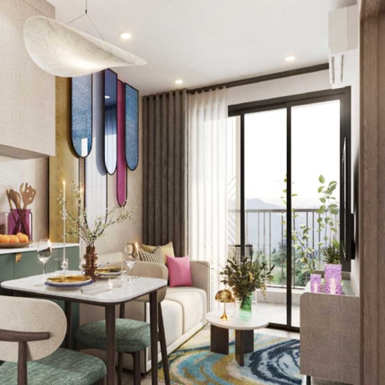 Floor-to-ceiling windows flood the space with natural light, framing views of tropical greenery. The private balcony—ideal for morning coffee or evening breezes—adds an outdoor escape. Premium finishes, smart storage, and energy-efficient appliances ensure low-maintenance luxury.