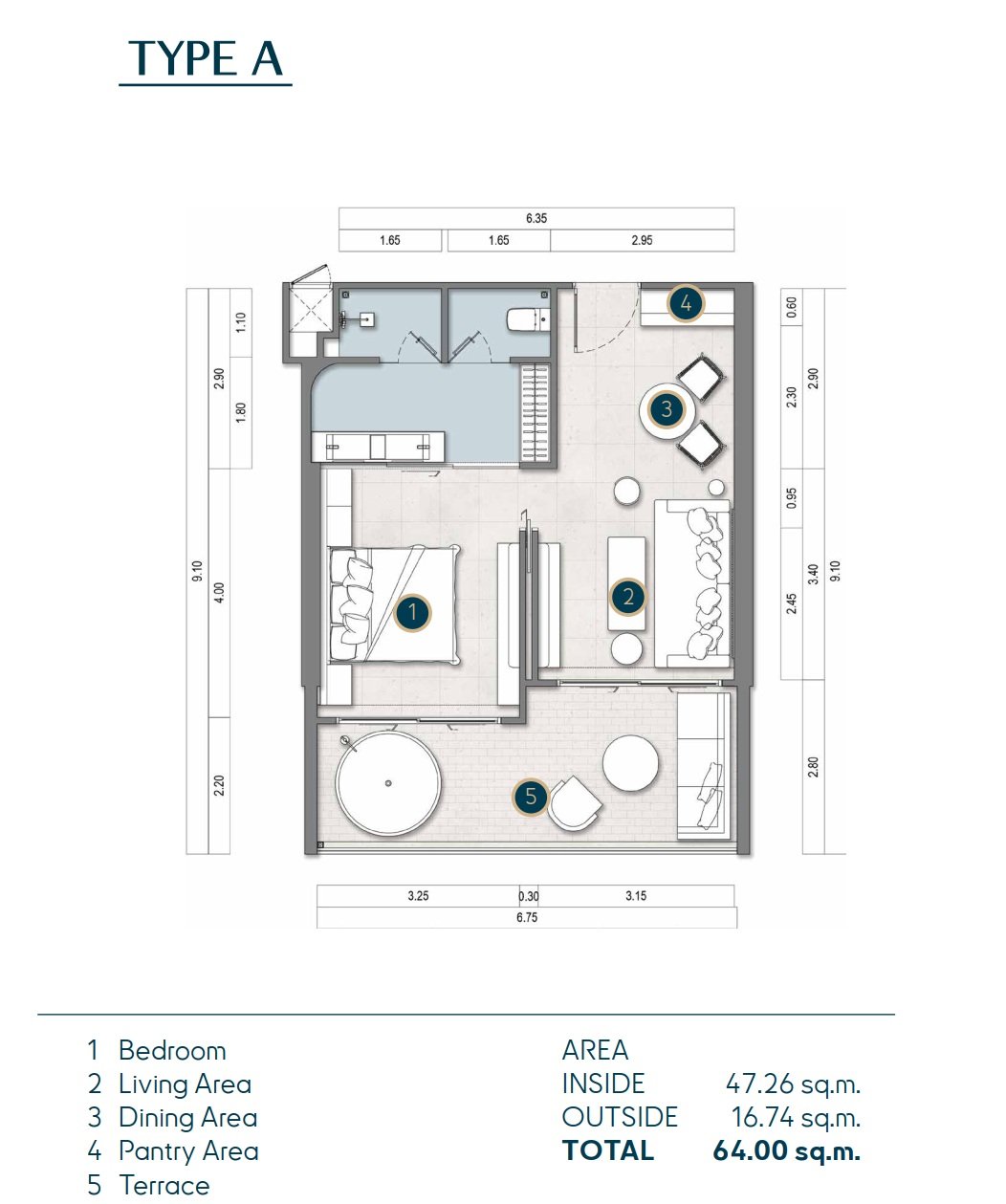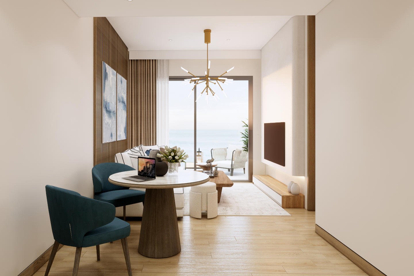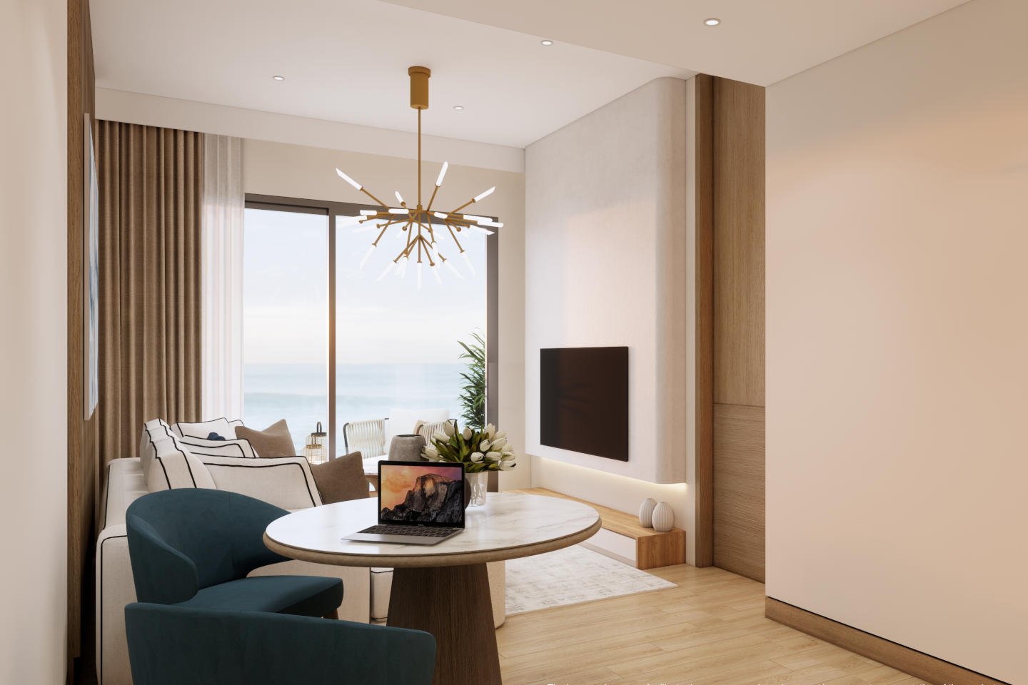 A one-bedroom residence offers the ideal entry into refined coastal living at Mai Khao Beach —compact, efficient, and thoughtfully designed for effortless enjoyment or smart investment. These units typically range from 64 to 75 square meters of interior space, with open-plan layouts that feel spacious and inviting. Floor-to-ceiling glazing floods the living area with natural light, while a modern kitchenette features high-quality appliances, stone countertops, and seamless integration with the dining and lounge zones.