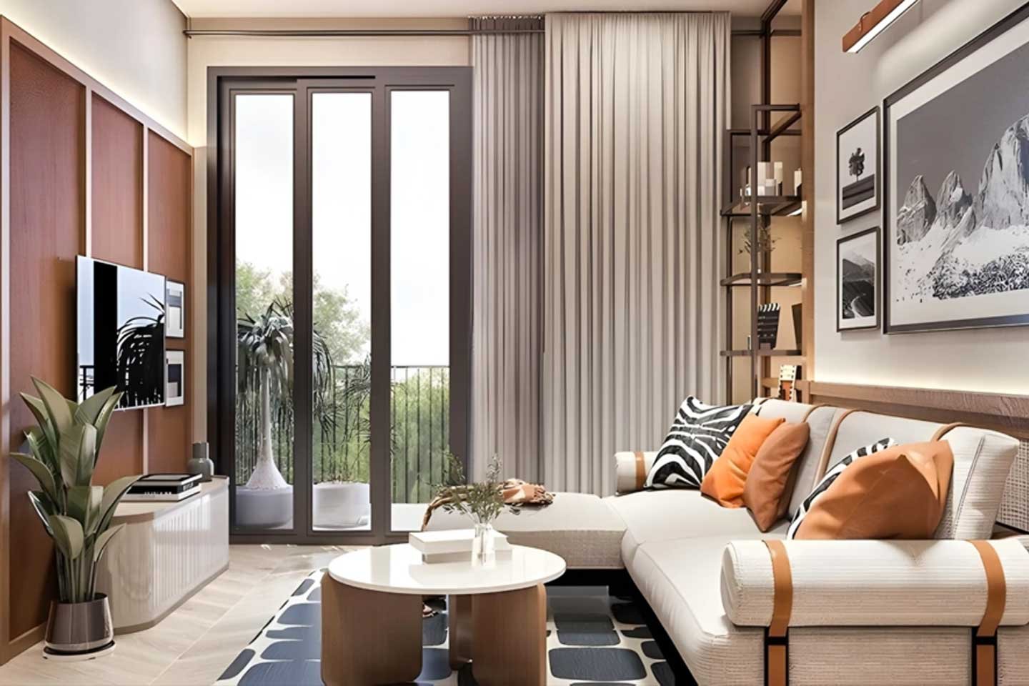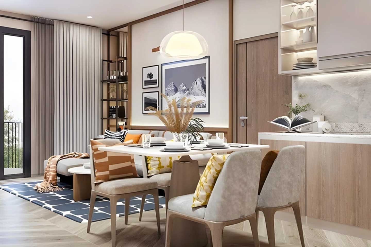 Blending functionality with flair, the design features two bedrooms flanking a central living-kitchen-dining zone. Ample natural light pours in, enhanced by sea-facing windows and a spacious private balcony for outdoor dining or lounging. Quality materials, smart storage, and a neutral aesthetic make it adaptable for families or remote setups. Low-rise structures (4-5 floors) on expansive land ensure breezy, open vibes in a intimate community setting.