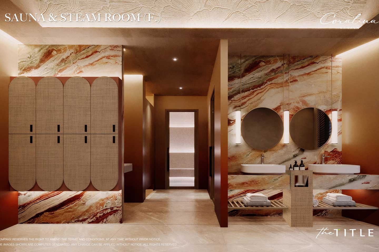 Bedrooms are positioned for maximum privacy: the master suite delivers a luxurious retreat with a generous walk-in wardrobe, spa-inspired ensuite (rain shower, modern fittings, and often a freestanding tub positioned to capture views), while the second bedroom offers stylish comfort with built-in storage and ensuite or shared bathroom access. Warm wood cladding, ambient LED lighting, neutral tones with textured accents, and subtle bronze/gold details create a sophisticated yet welcoming atmosphere.