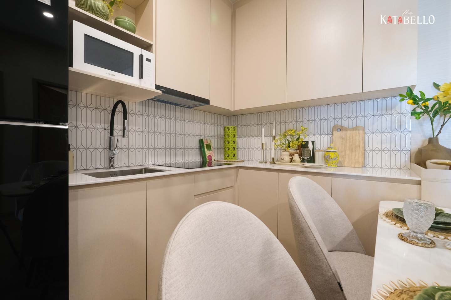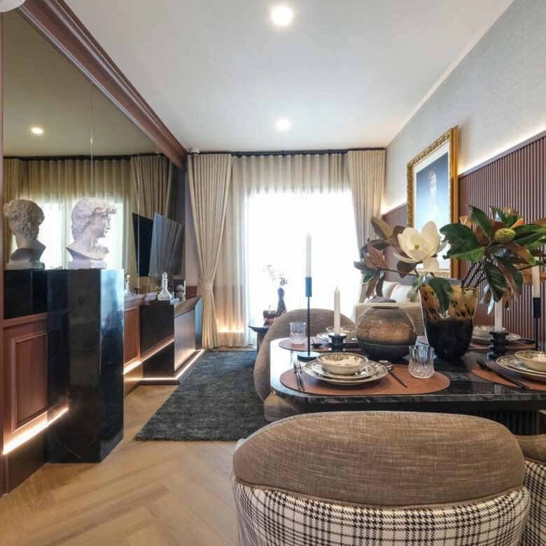 Oversized windows flood the space with light, paired with refined materials—soft-close drawers, elegant flooring, and sophisticated lighting—for a polished, welcoming vibe. The layout emphasizes seamless flow and practicality, capturing Phuket’s laid-back essence.