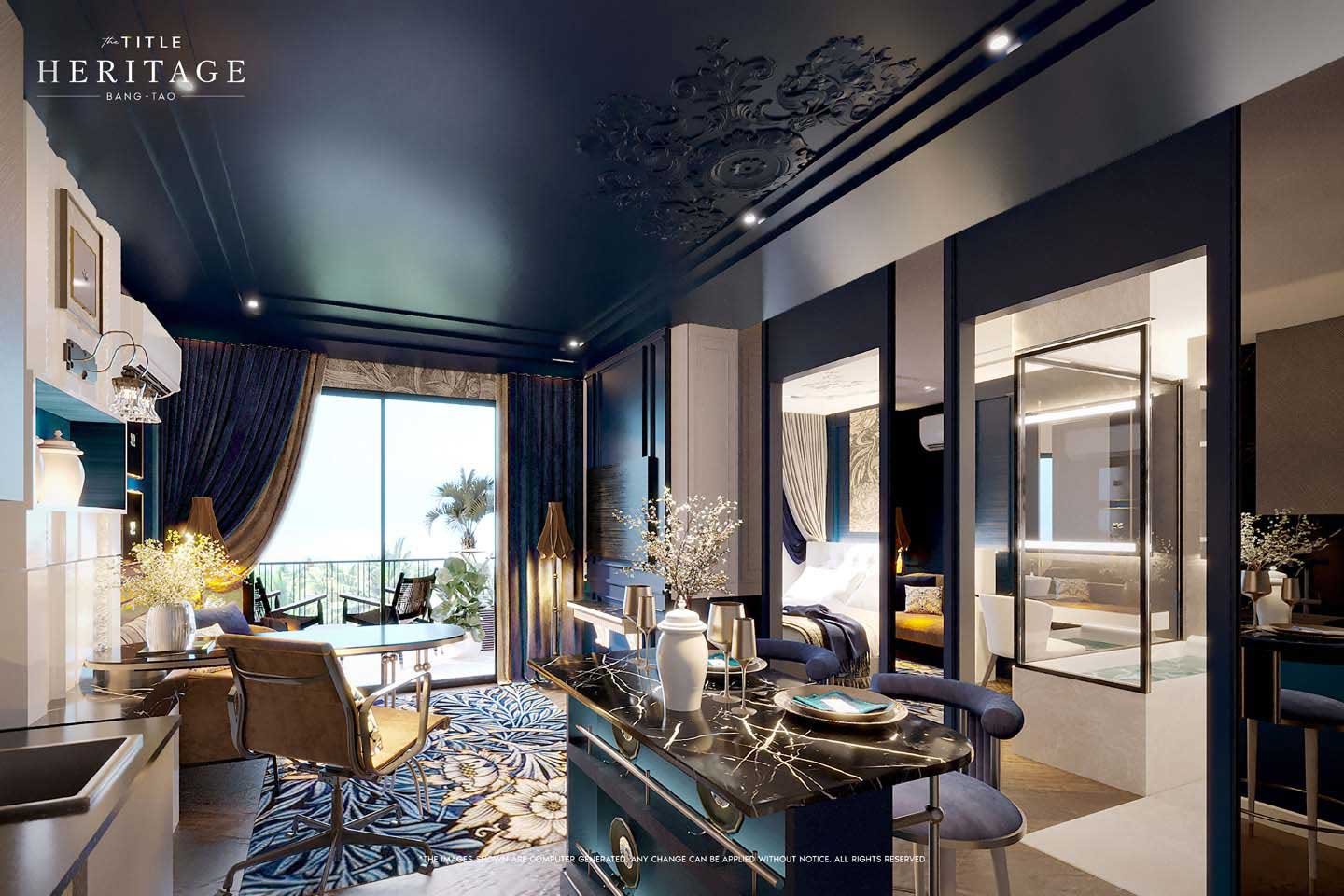 The one-bedroom large layout boasts an expansive living area that flows effortlessly into a well-appointed kitchen and dining nook, ideal for entertaining or quiet evenings. The generous bedroom includes en-suite facilities, walk-in storage, and floor-to-ceiling windows that invite in stunning vistas of tropical greenery or sparkling pools. Heritage-inspired elements, like subtle architectural nods to Phuket’s past, pair with contemporary fixtures for a warm, inviting atmosphere. Choose partial or full furnishing to suit your taste, and savor the extended balcony for outdoor relaxation.