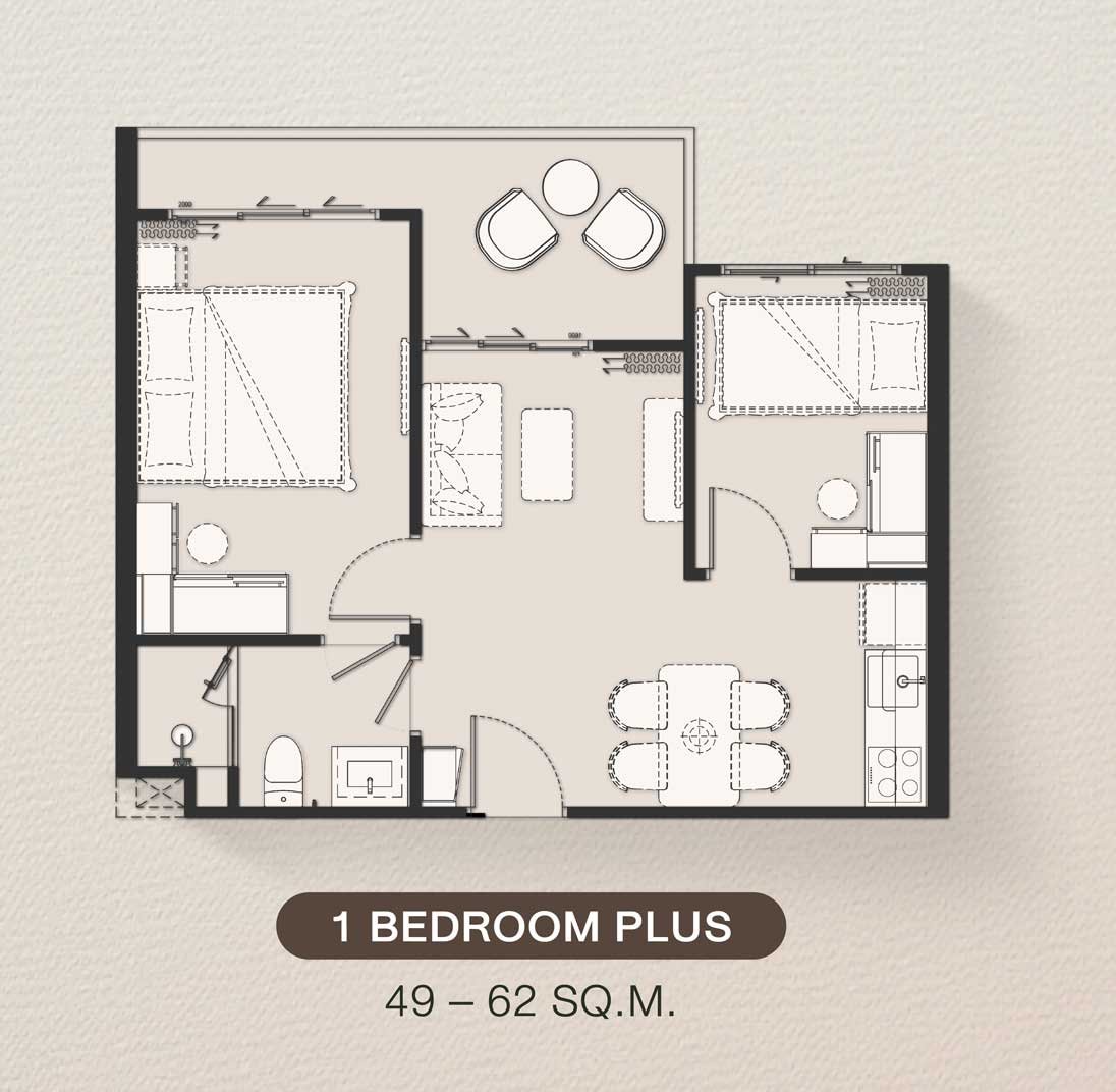 With generous dimensions of approximately 49–62 square metres, the 1-Bedroom Plus apartment redefines what a one-bedroom home can be—spacious, adaptable, and undeniably luxurious. It’s perfect for couples who love to host, professionals who blend work and leisure, or investors pursuing higher-end short- and long-term rental performance in Phuket’s elite west-coast enclave.