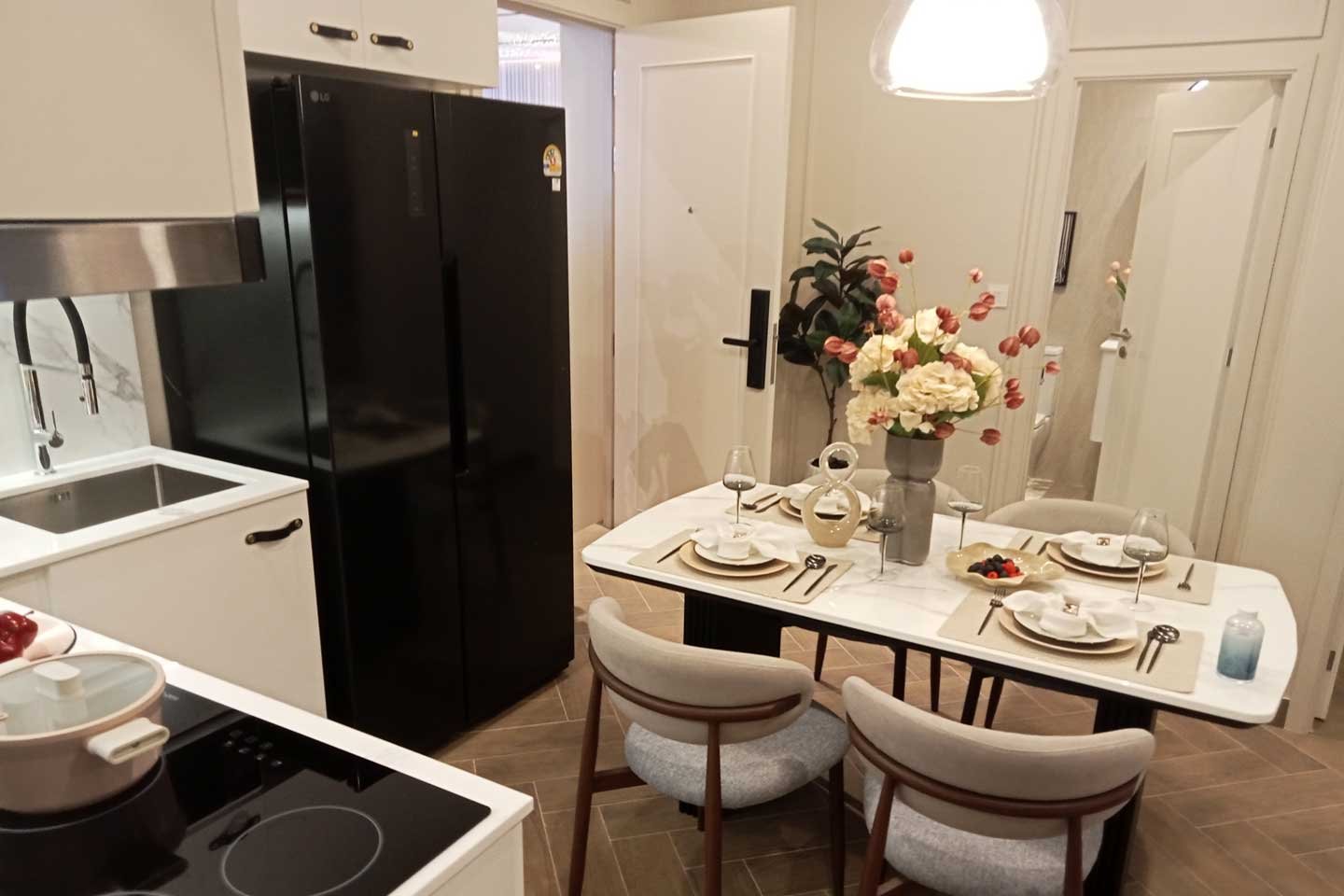 The layout is thoughtfully zoned for real living: two well-proportioned bedrooms provide genuine privacy, with the master bedroom typically featuring en-suite access and direct connection to the private balcony. The open-plan living-dining-kitchen area feels bright and sociable, thanks to large windows, high ceilings, and premium finishes that keep everything feeling fresh and modern. The kitchen is equipped for everyday cooking or entertaining, with quality appliances and ample storage. Your terrace—whether overlooking lush tropical gardens, the resort pools, or catching sea glimpses—extends your home outdoors, creating that signature Phuket indoor-outdoor flow.