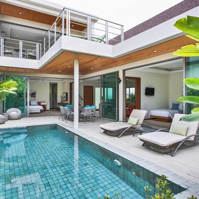 The large four bedroom pool villa set in Rawai is very spacious yet still very affordable, offering two bedrooms on the lower level and two on the upper level, all of which can comfortably accommodate a king size bed or two twin size beds and each with their own private Ensuite bathroom.