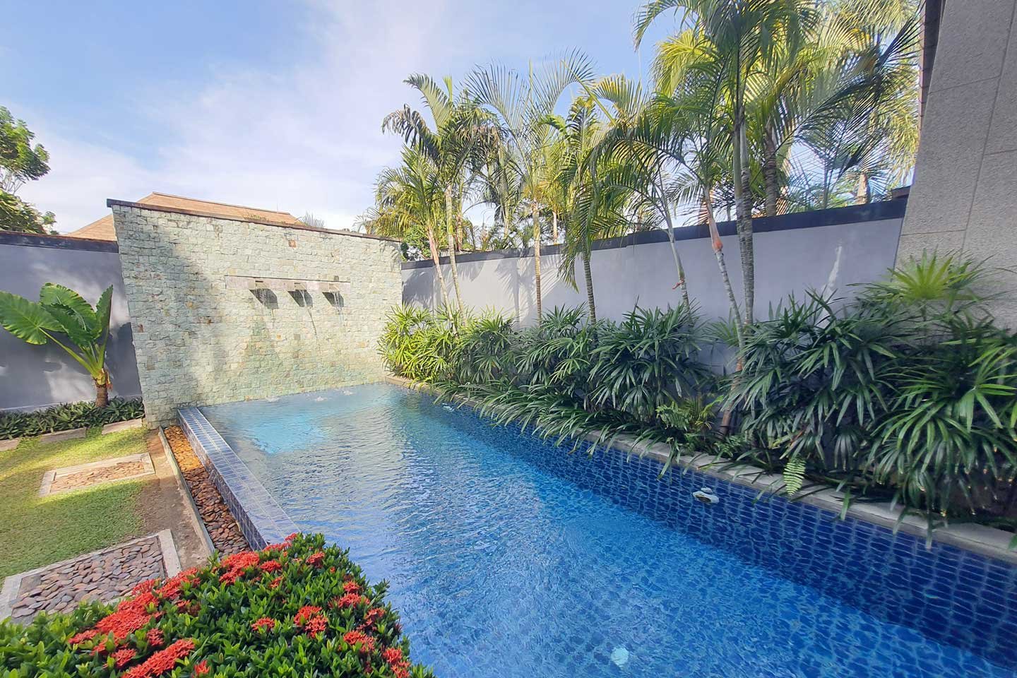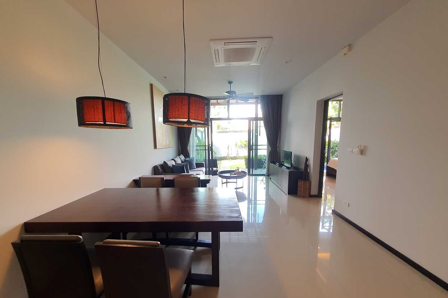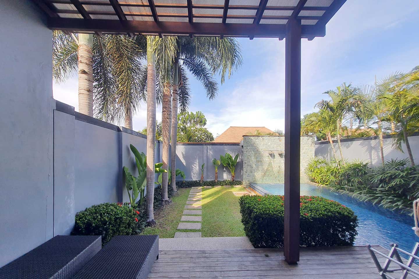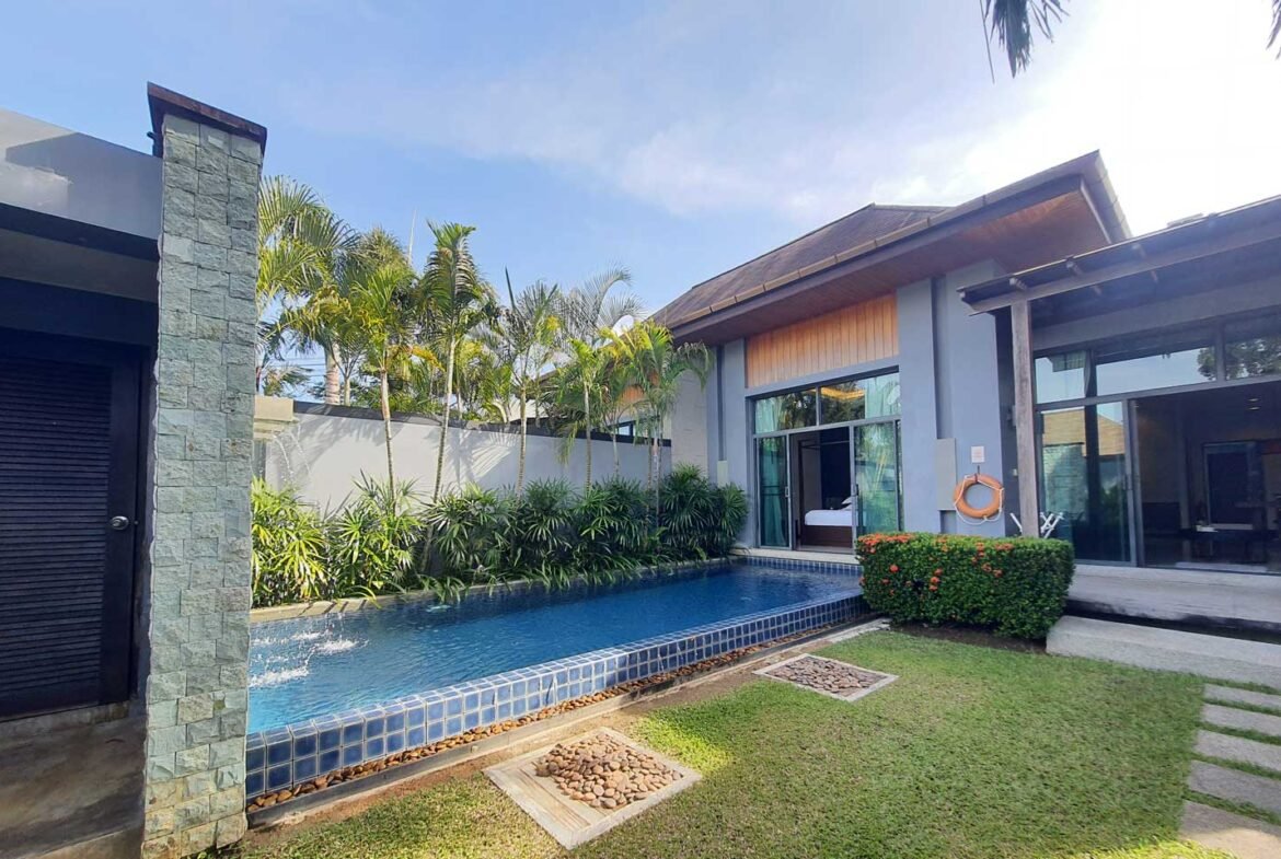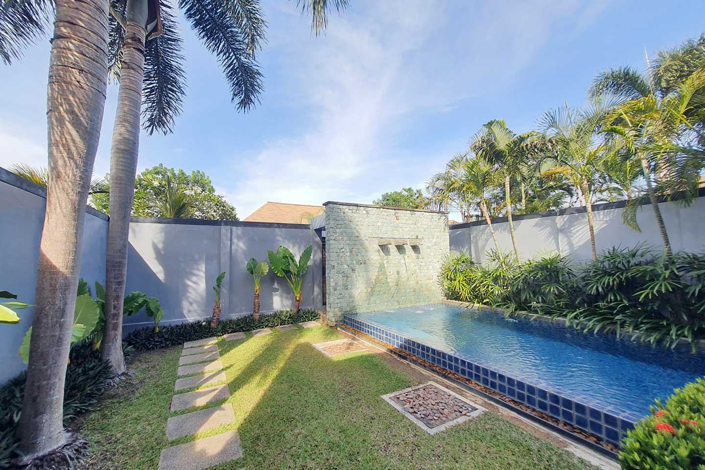 The private pool villa part of the estate The Onyx Essence is a modern 2 bedrooms villa with a private swimming pool and garden.