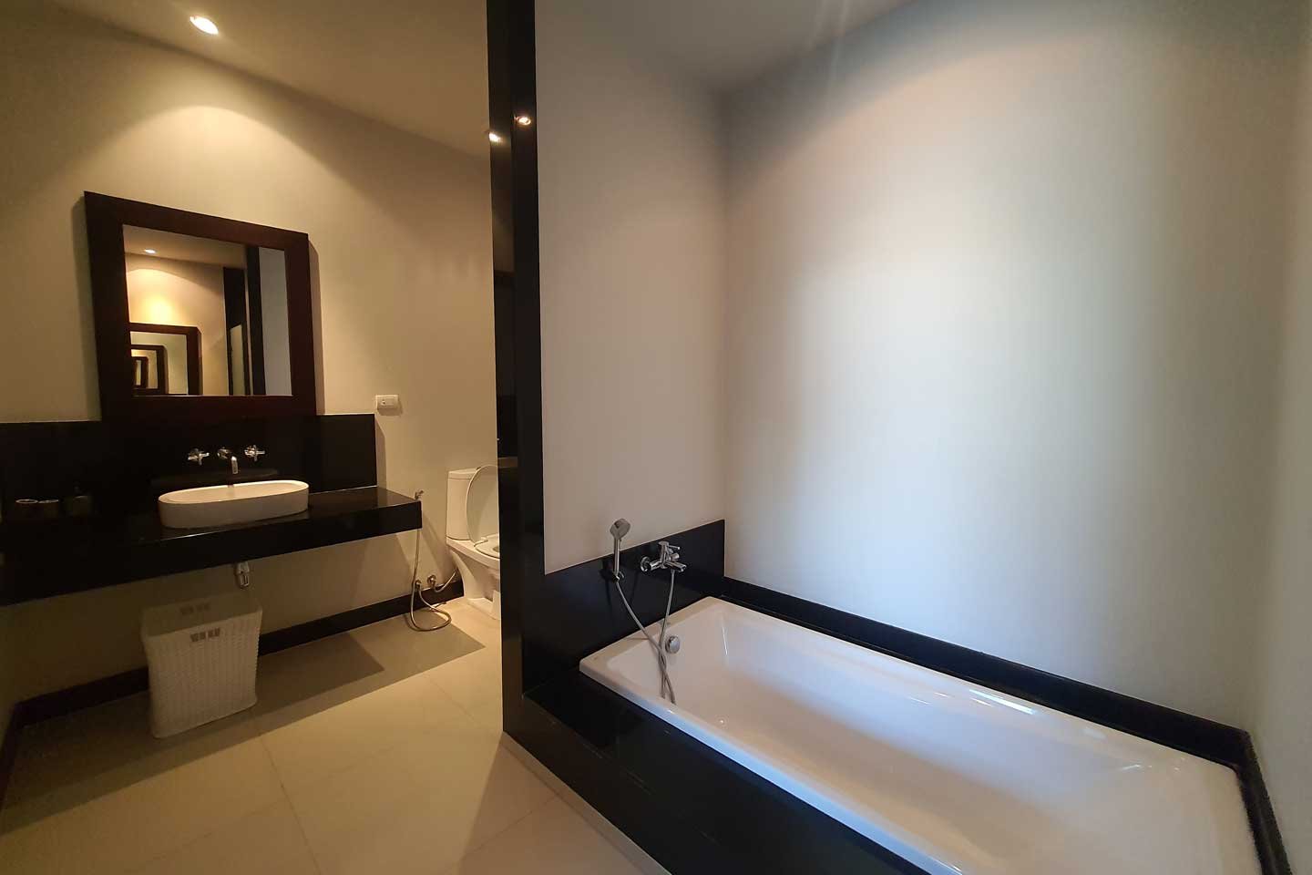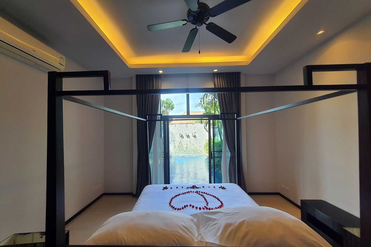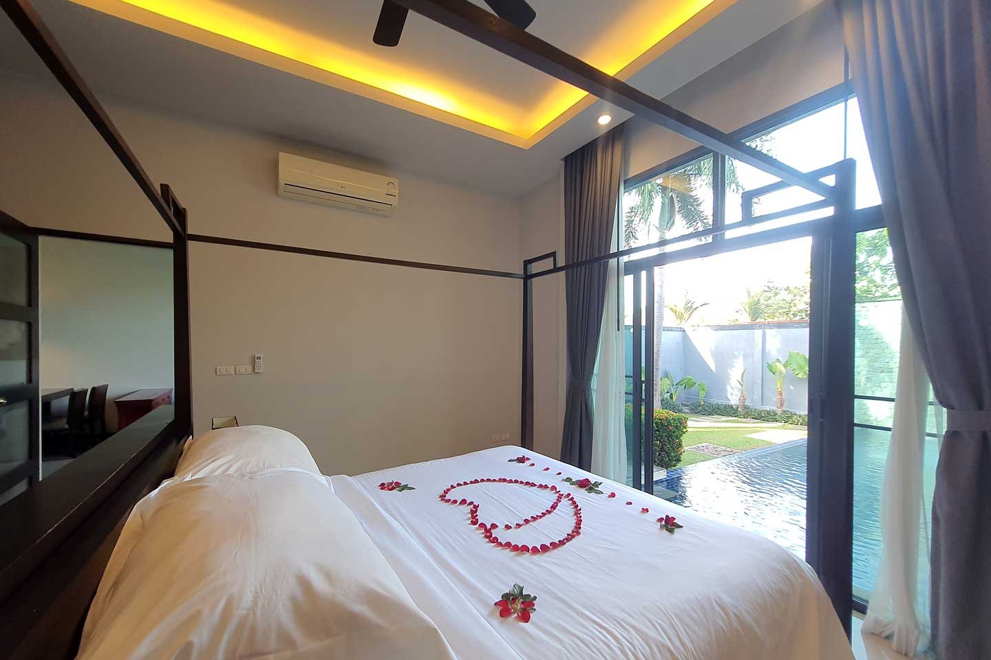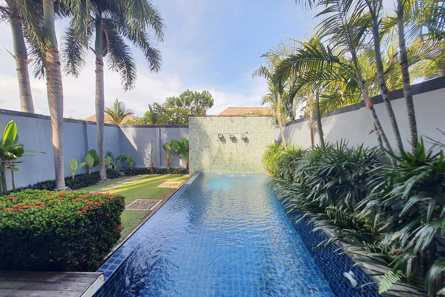 The private pool villa part of the estate The Onyx Essence is a modern 2 bedrooms villa with a private swimming pool and garden.