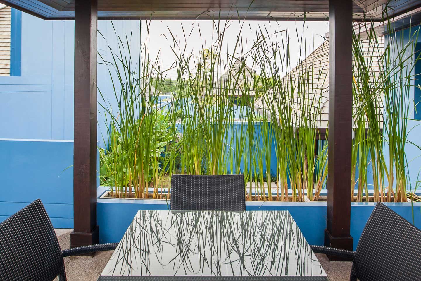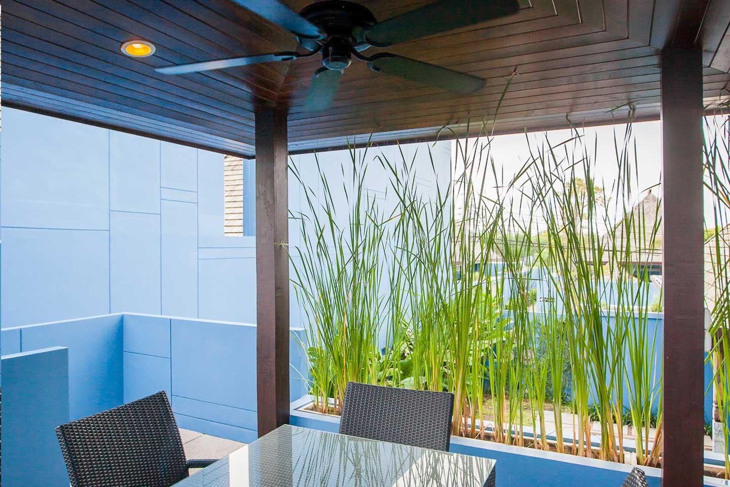 This 3 bedrooms villa, part of a private residence, is designed in the romantic Sino architectural concepts with a plot size 216 sq.m. their own private 6.4 m pool, courtyard, with open-plan living are, kitchen, dining, storage room and third bedroom is up-stair.