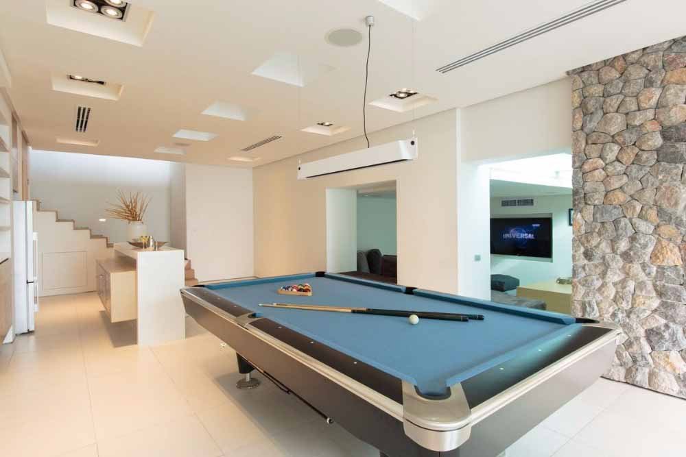 - Entertainment area including pool table, bar and fully featured media room