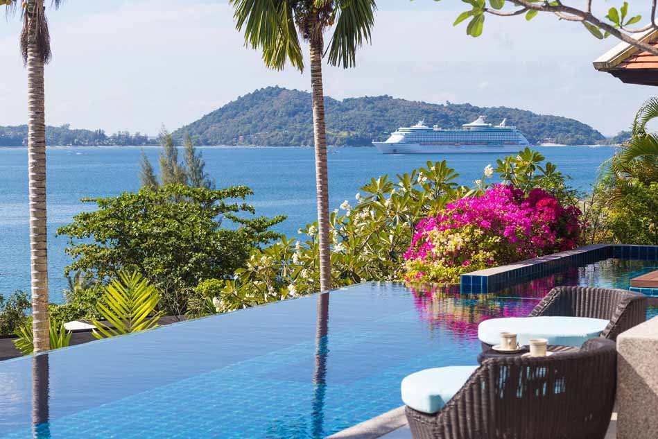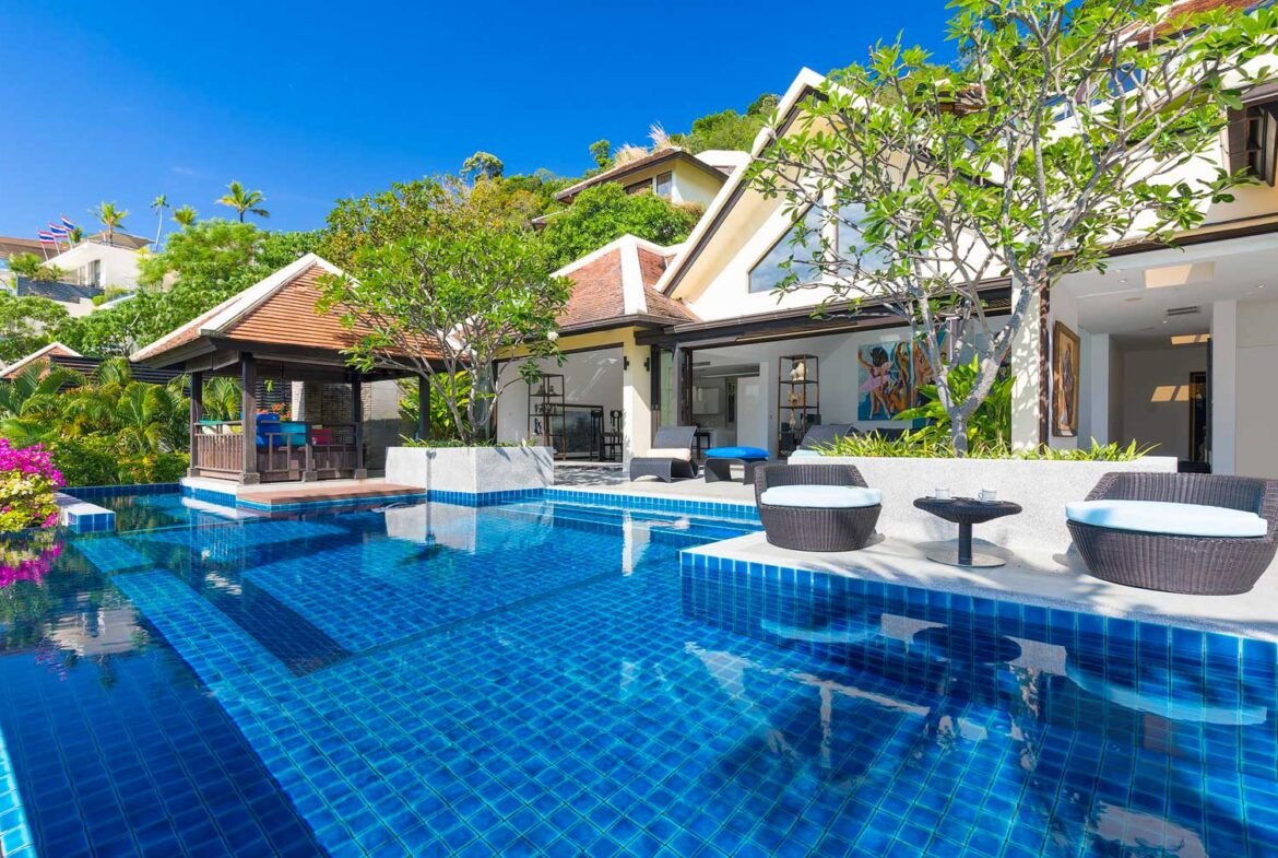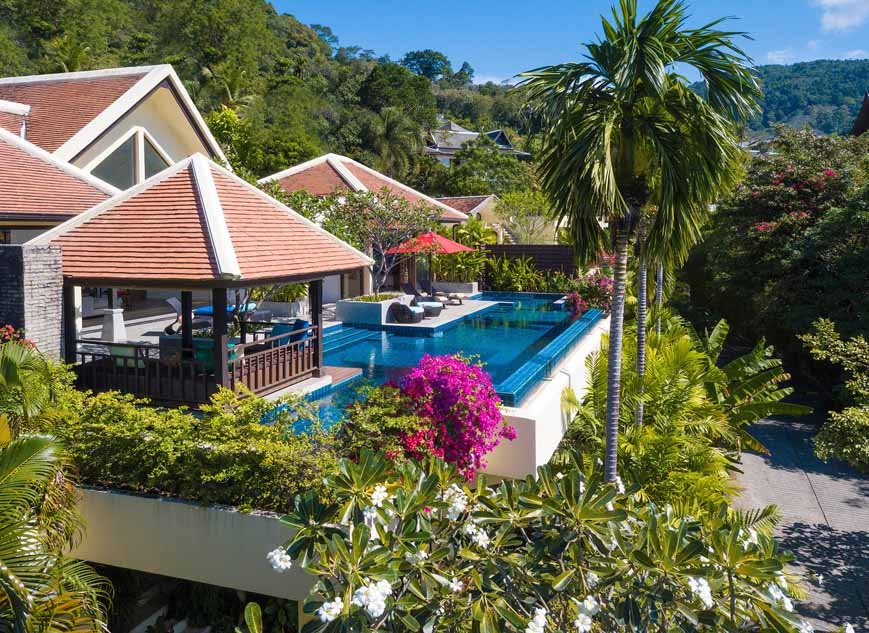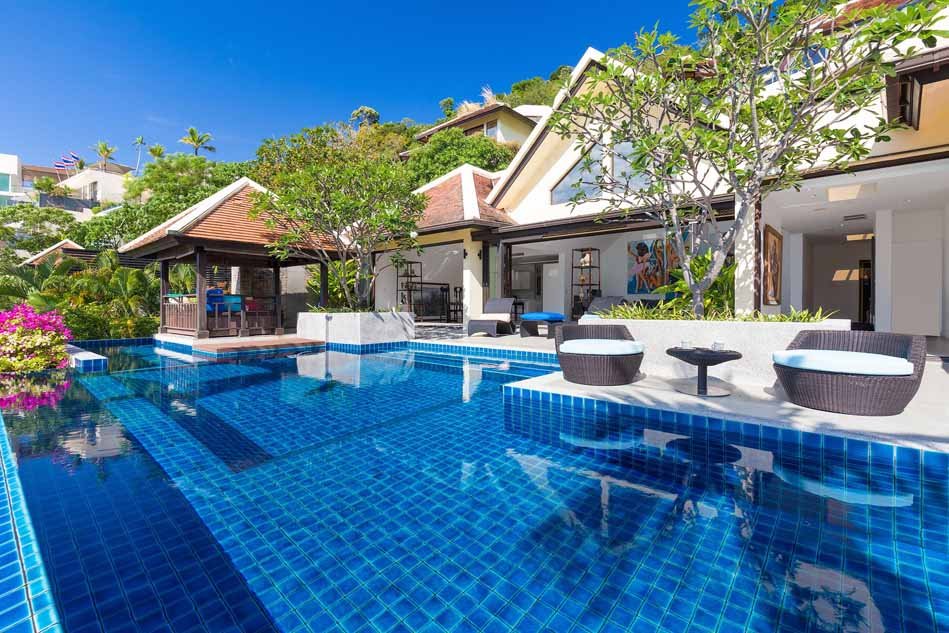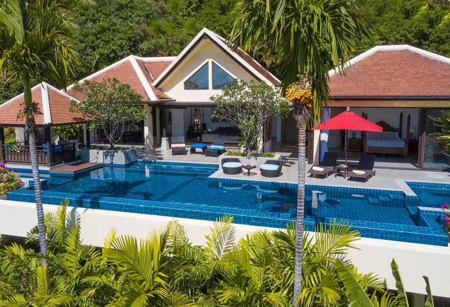 Overlooking the tranquil blue seas of Patong Bay, set high within an upscale Resort, the luxury villa offers panoramic ocean and mountain views. With high quality standards and a special attention to details, the villa provides a generous living space including 4 large bedrooms and 6 bathrooms across two main floors plus a large pool, terrace and garden areas.