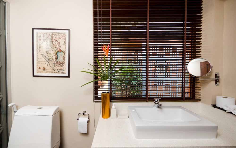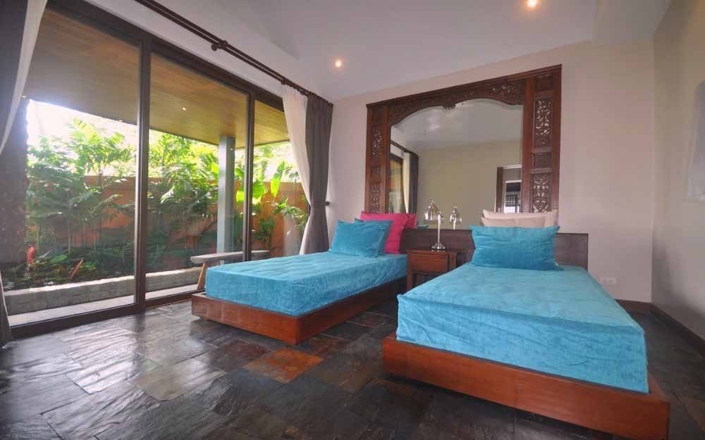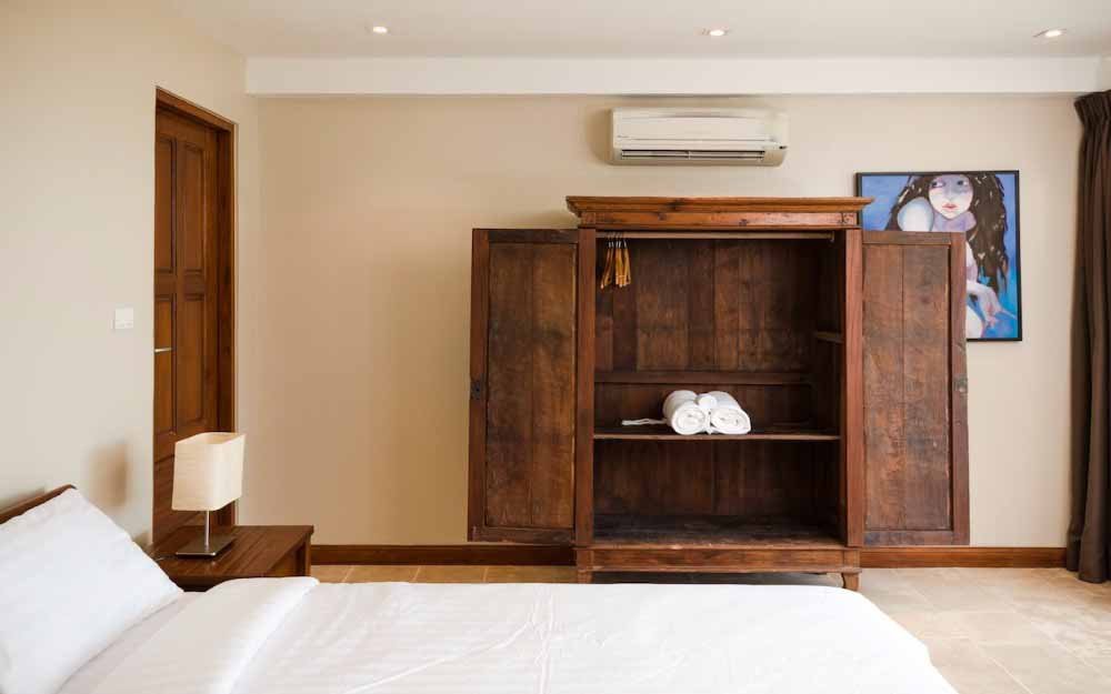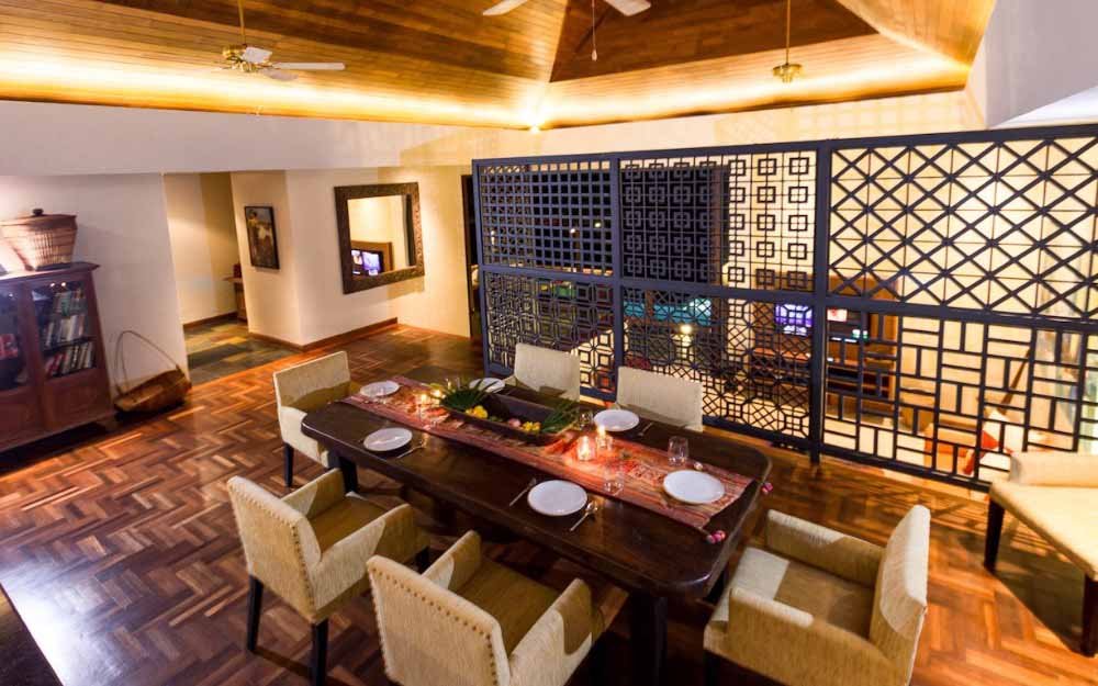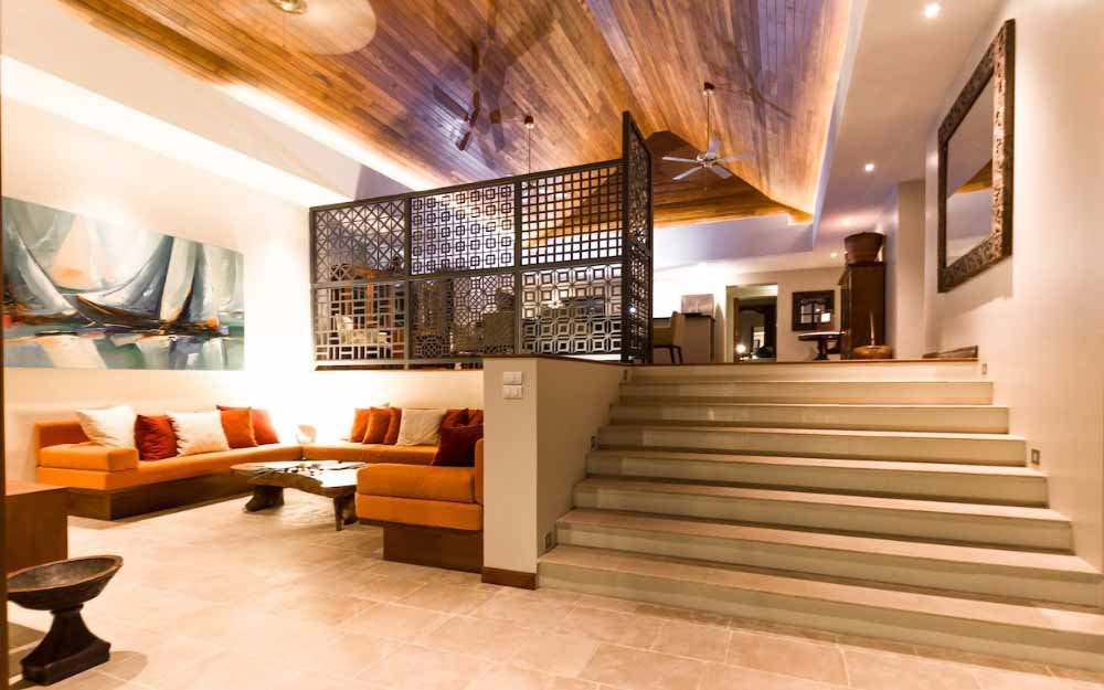 Interiors are finished with a mix of large sized, light coloured ceramic floors tiles and natural stone, large, free sliding, high quality, Sun-Paradise windows and doors, with a selection of original artworks and antique furniture from throughout Asia. All this gives a very sophisticated and comfortable atmosphere to the Villa.