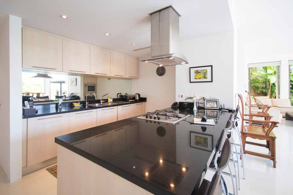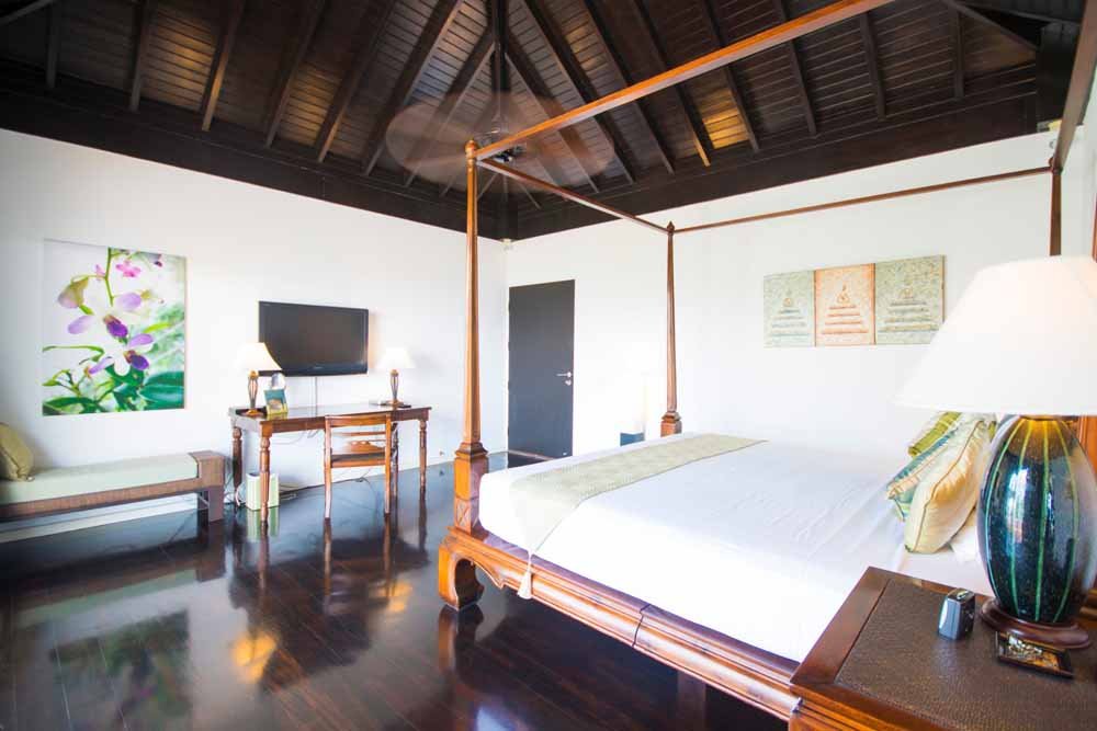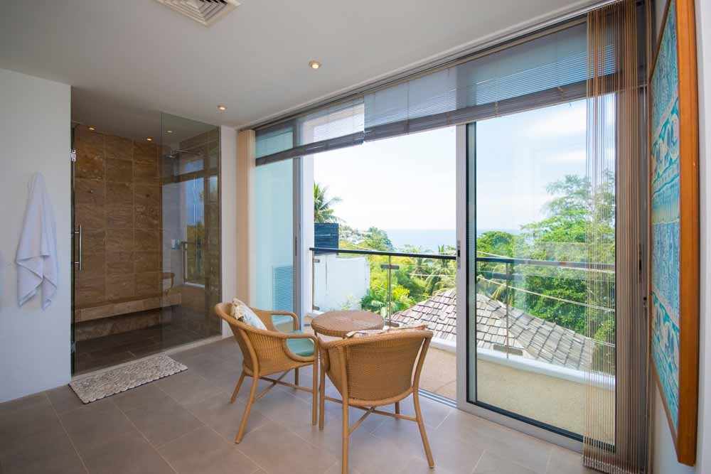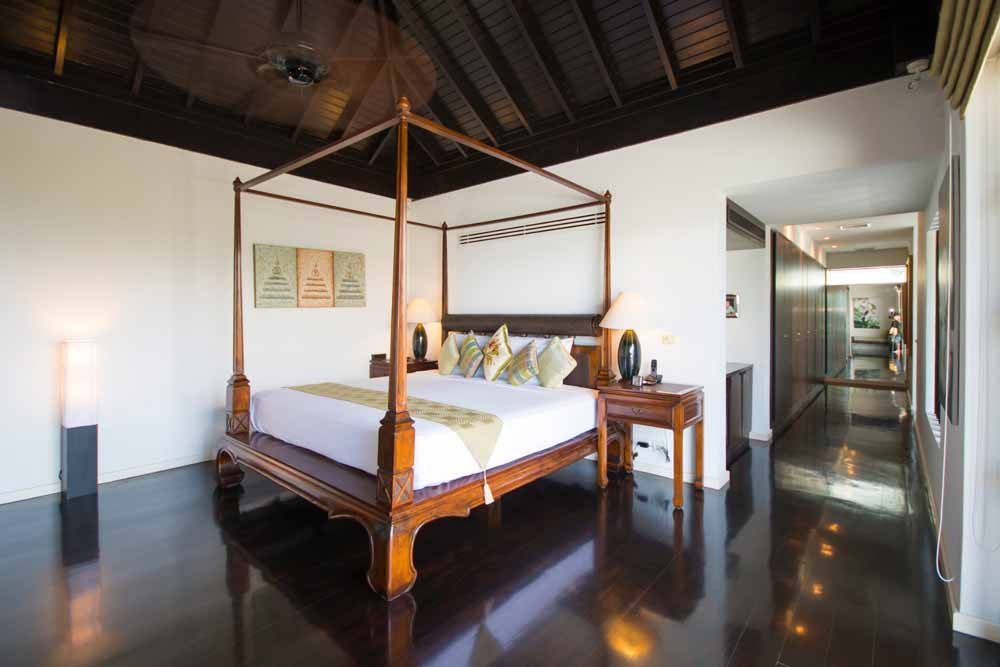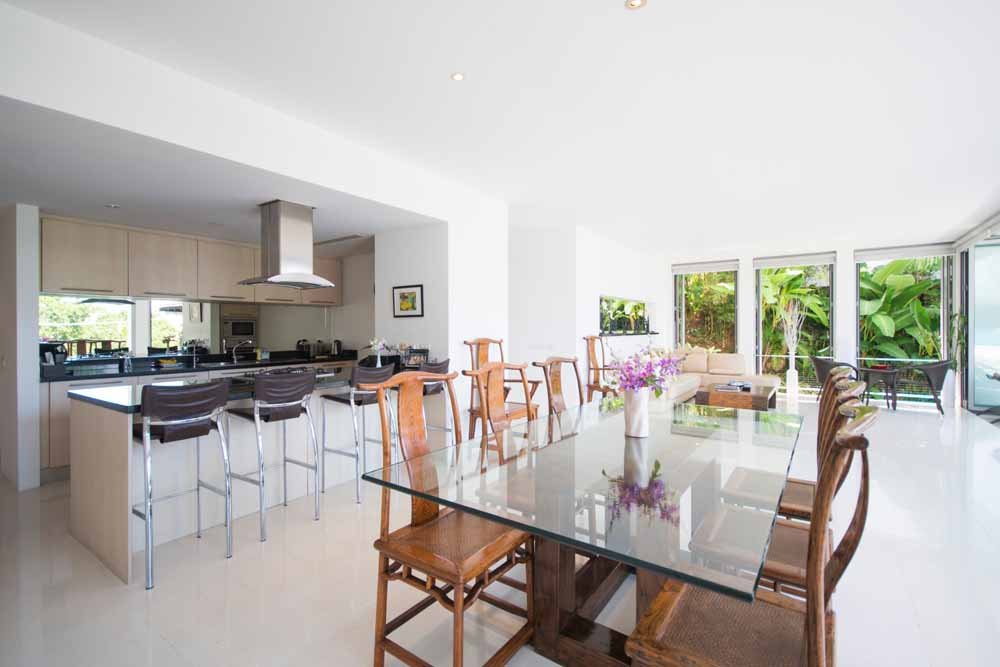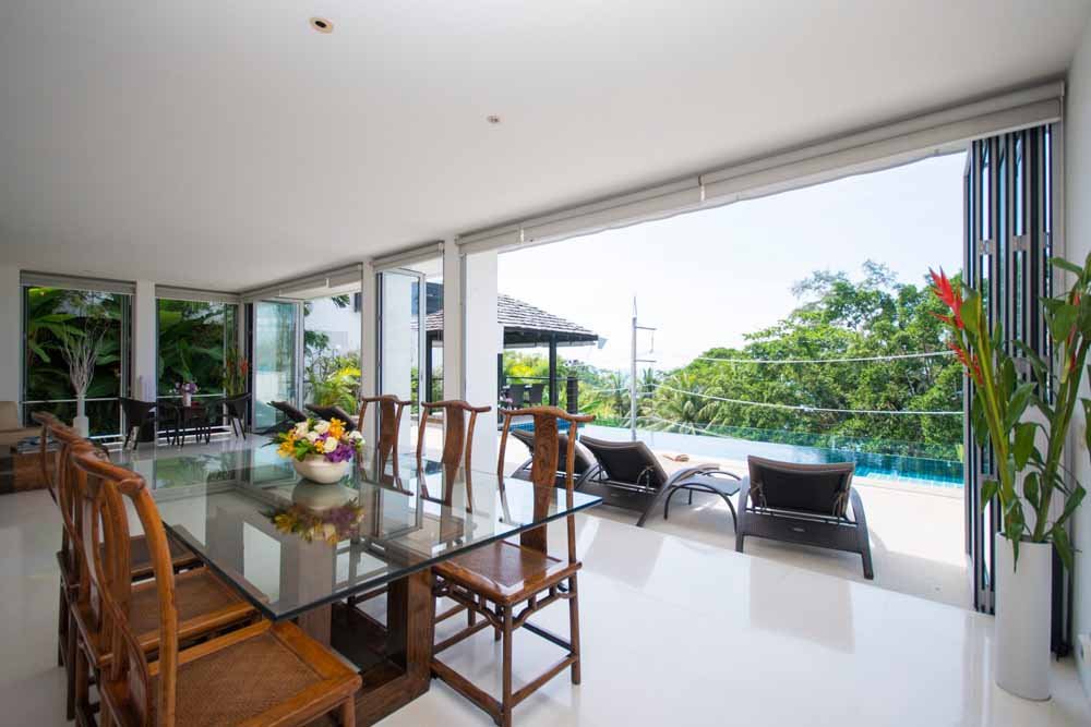 This space is surrounded by storey height, bi-folding glass windows which open to effortlessly merge the internal space with the outside world.Outside a large deck area with sunbeds surrounds a private infinity pool. A traditional Thai sala provides seating and shade. All of which enjoy fantastic sea views, amazing sunsets as well as the cooling ocean breezes.
