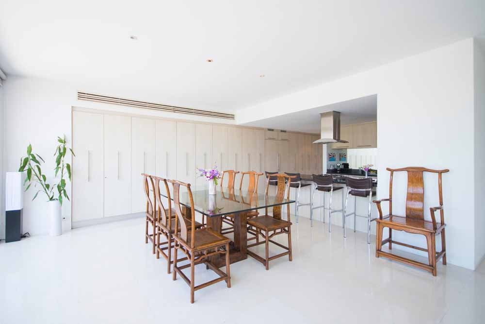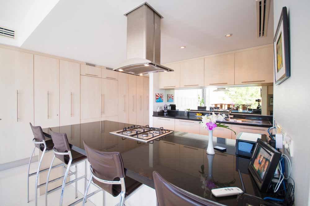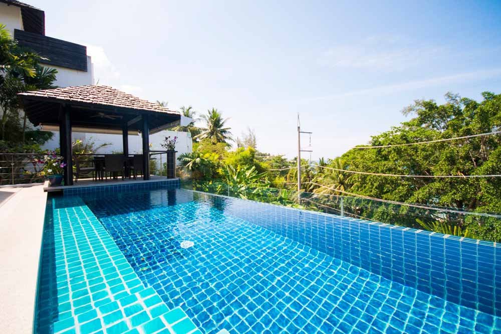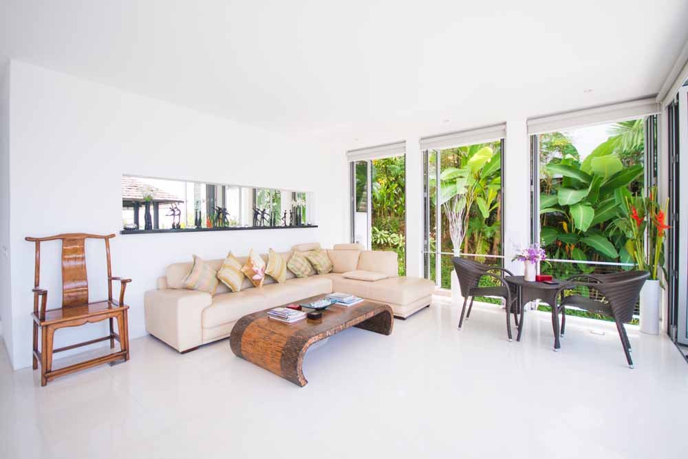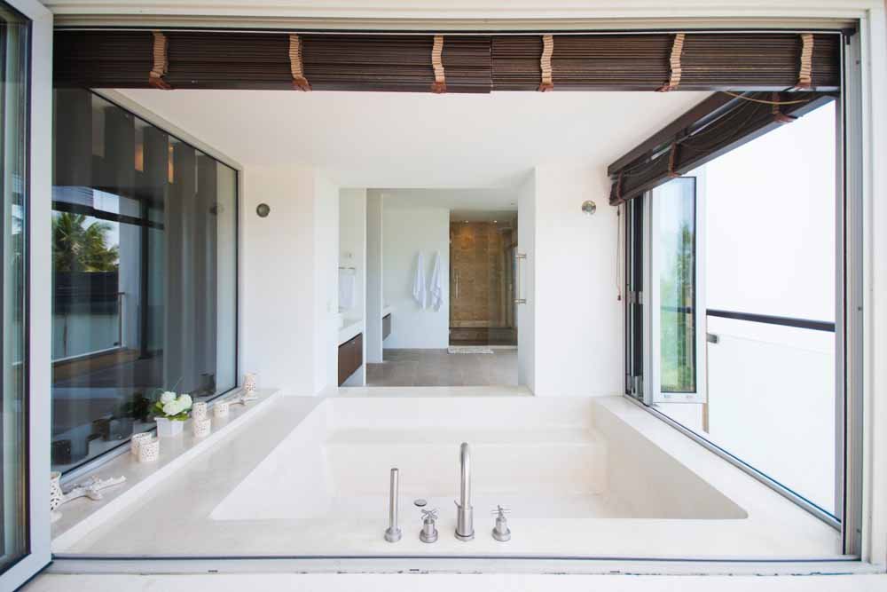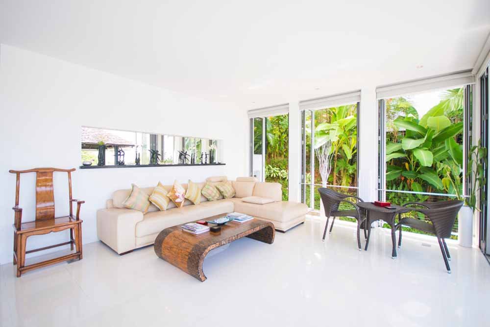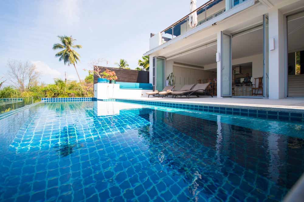 This space is surrounded by storey height, bi-folding glass windows which open to effortlessly merge the internal space with the outside world.Outside a large deck area with sunbeds surrounds a private infinity pool. A traditional Thai sala provides seating and shade. All of which enjoy fantastic sea views, amazing sunsets as well as the cooling ocean breezes.