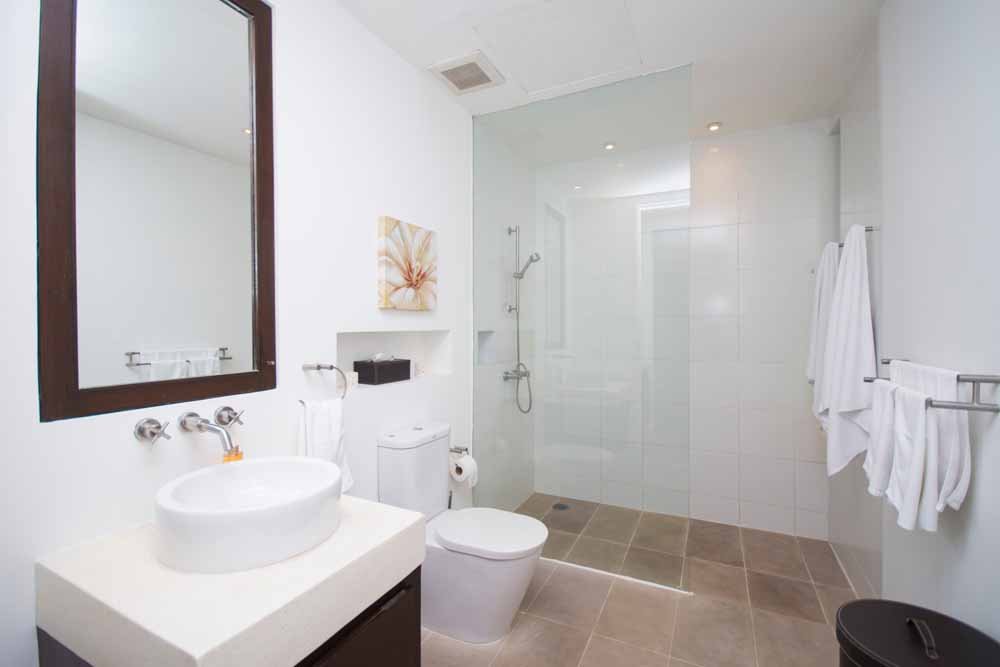The lower floors consist of three further en-suite bedrooms, although one of which is currently being used as a less formal lounge/tv/office room. The other two bedrooms have views across to the beach on the front of the house. All have private bathrooms with showers
