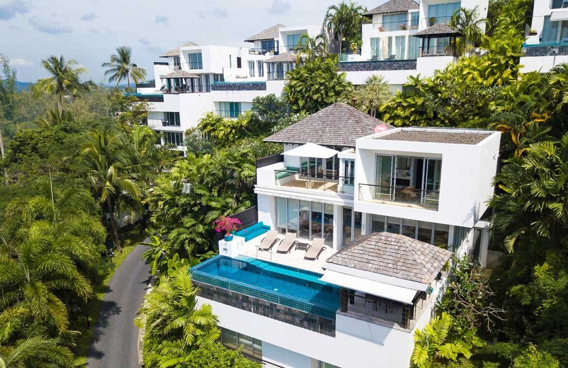 This luxury Sea View villa is an innovatively designed pool villa, just steps from Phuket’s famed and exclusive Surin Beach. The villa has spectacular, elevated views of the pristine the crystal-clear waters of the Andaman Sea. This is the closest villa in the estate to the beach; a mere 200 metre walk to reach these golden, tropical sands.