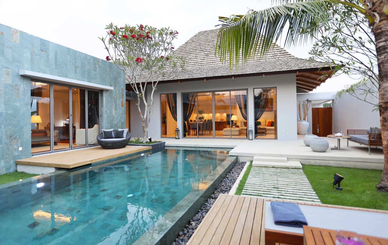 This modern 2-bedroom Balinese style pool villa is part of a multi-awarded villa development nestled in Cherngtalay, one of Phuket’s most prestigious residential areas.