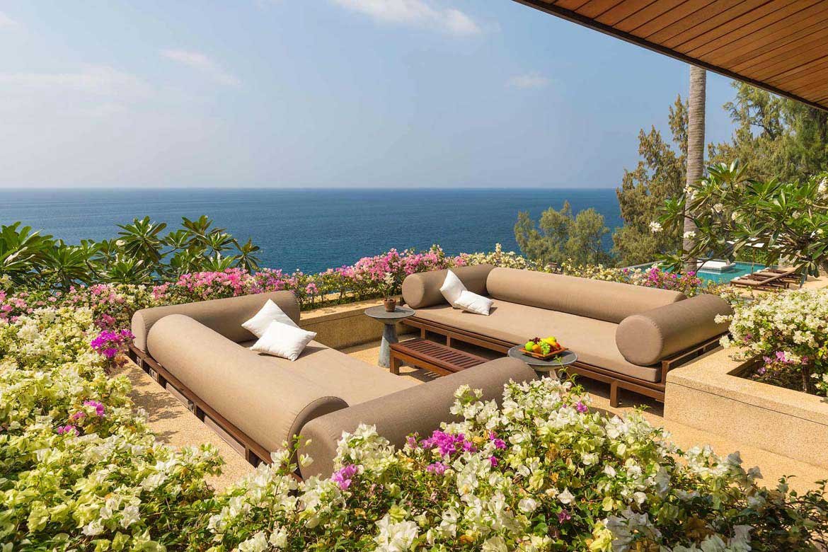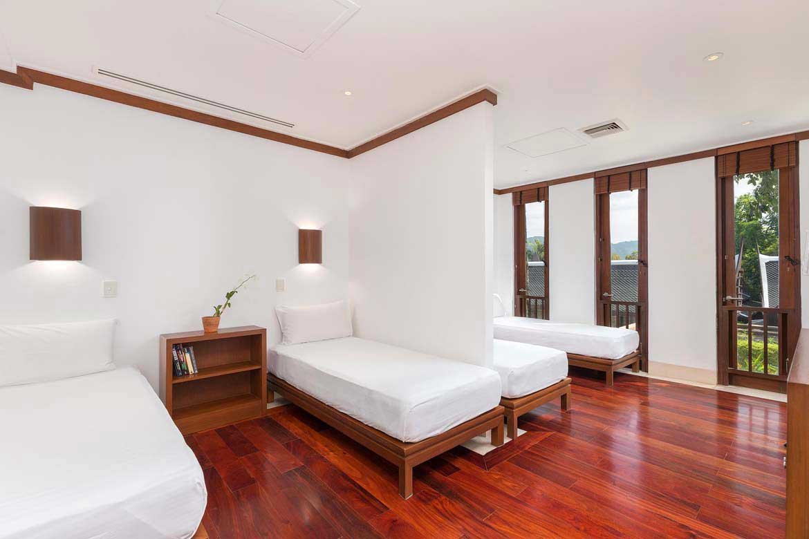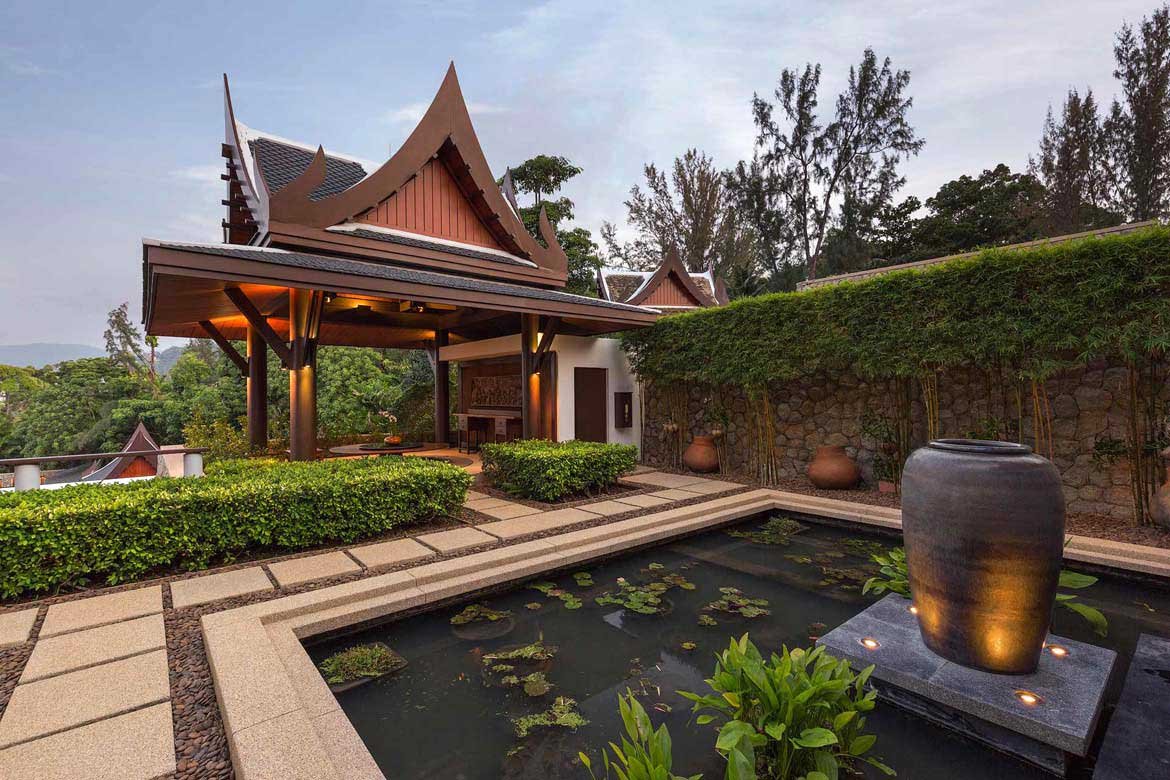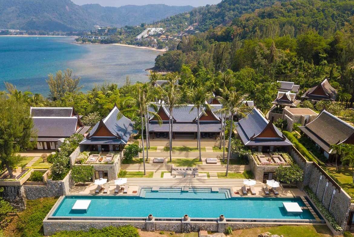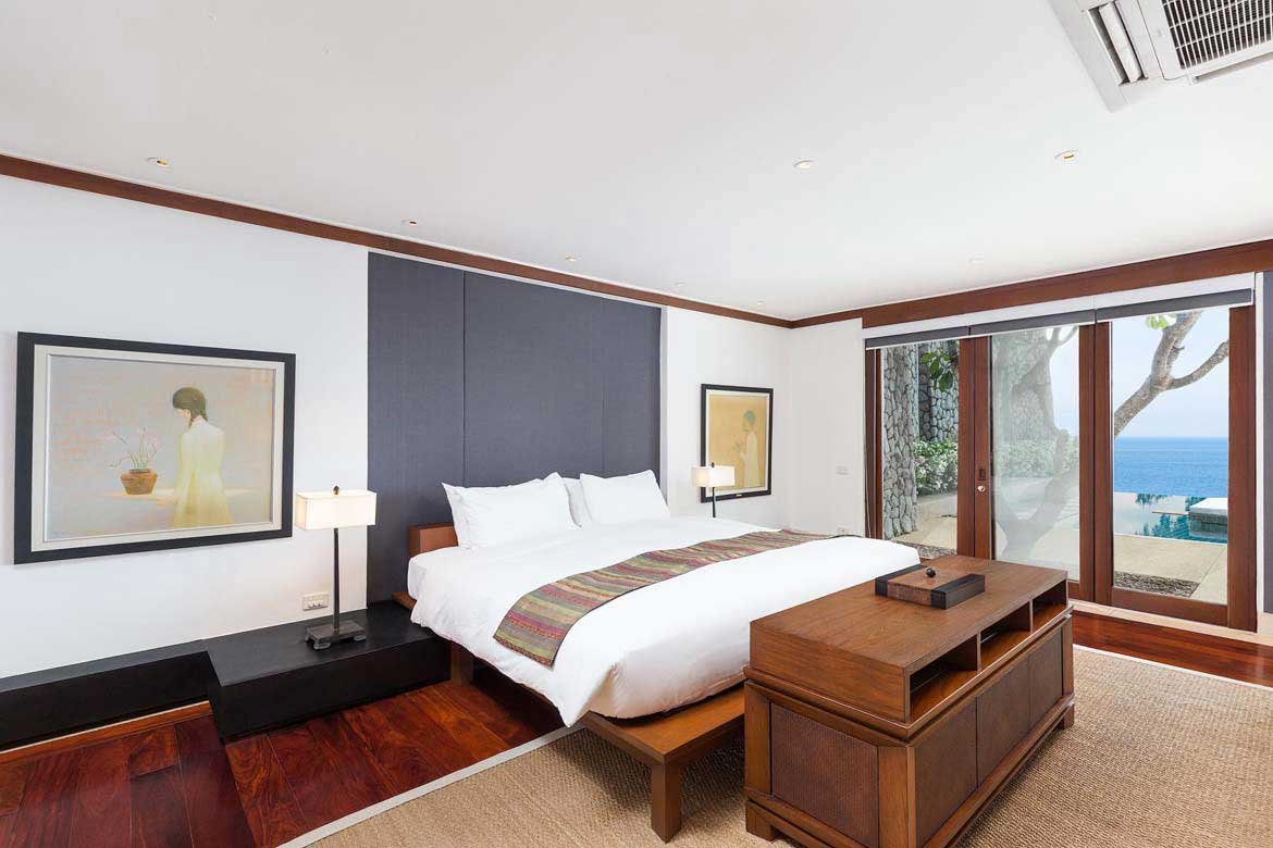 Situated within a secure and private oceanfront estate at Kamala, this Jean-Michel Gathy designed home follows closely the Aman style, with high, teak lined, vaulted ceilings in the main living and dining areas and master bedrooms.