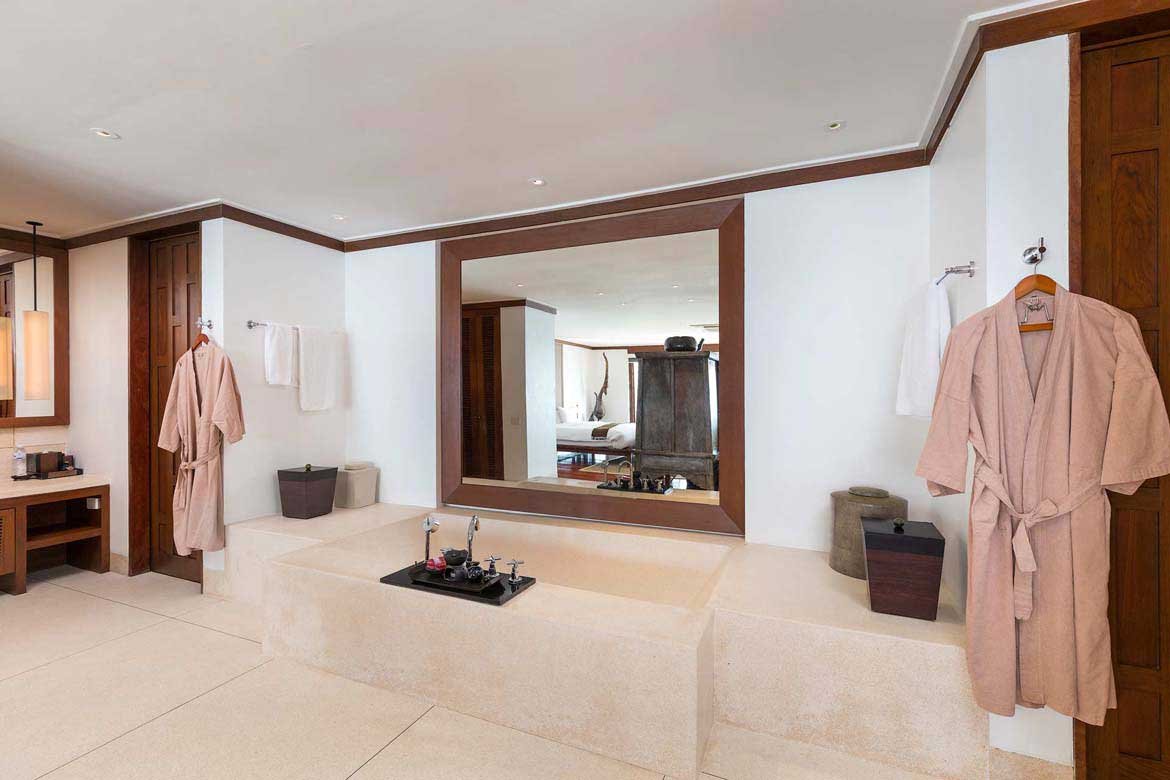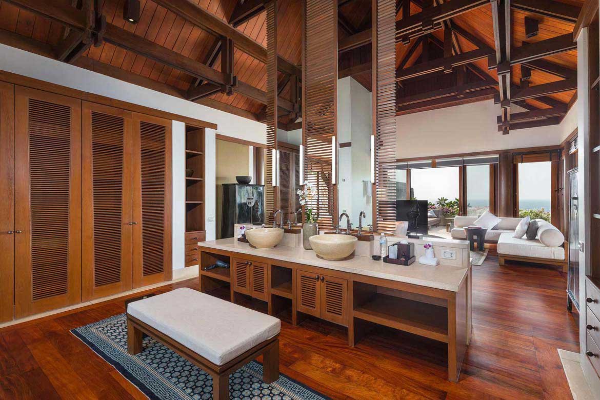 On either side of this living pavilion are two identical master suites with terraces which also look out over the Andaman sea.