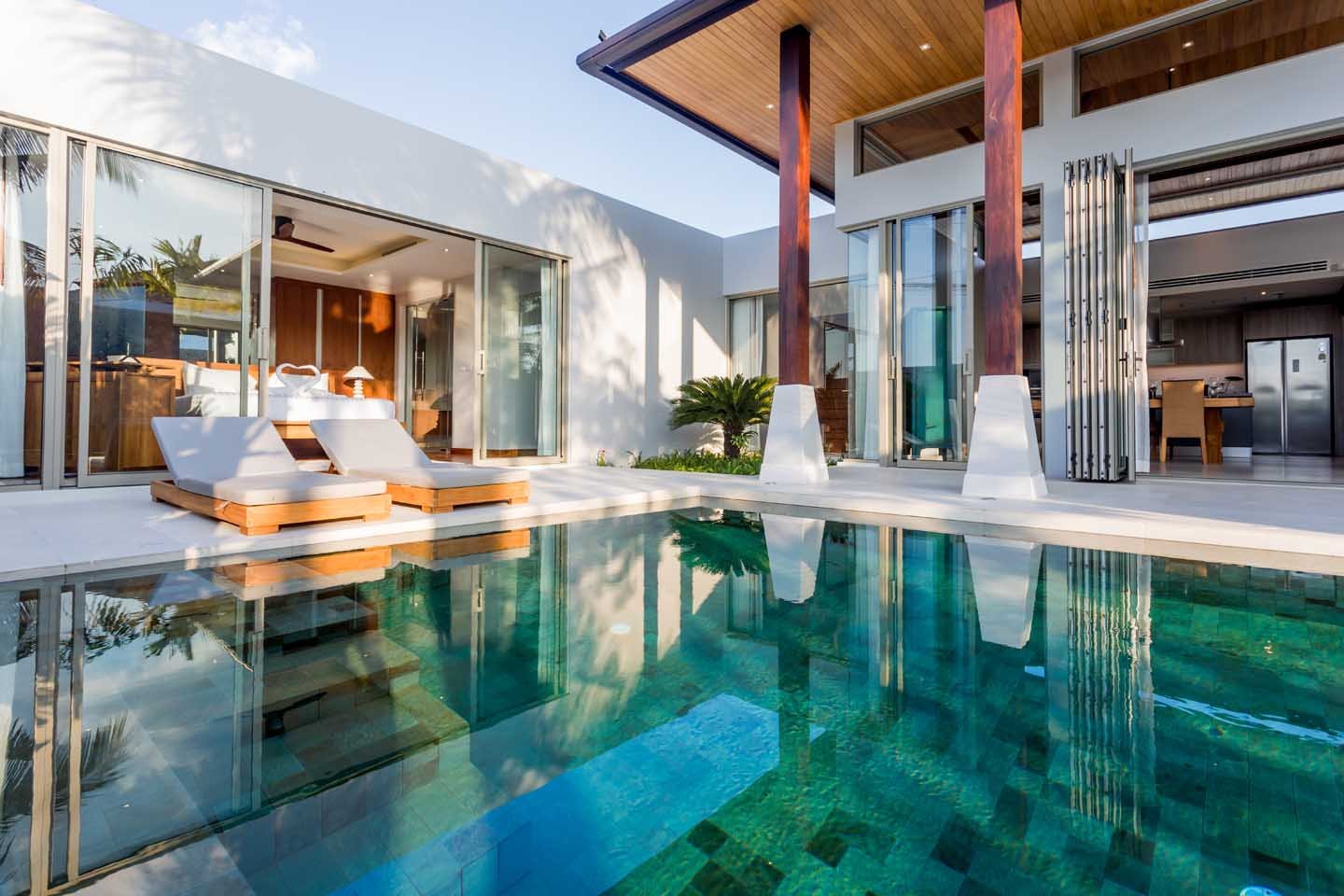 This luxury pool villa, part of a luxury residence and built by an award winning developer is set on Layan hills and surrounded by green nature.