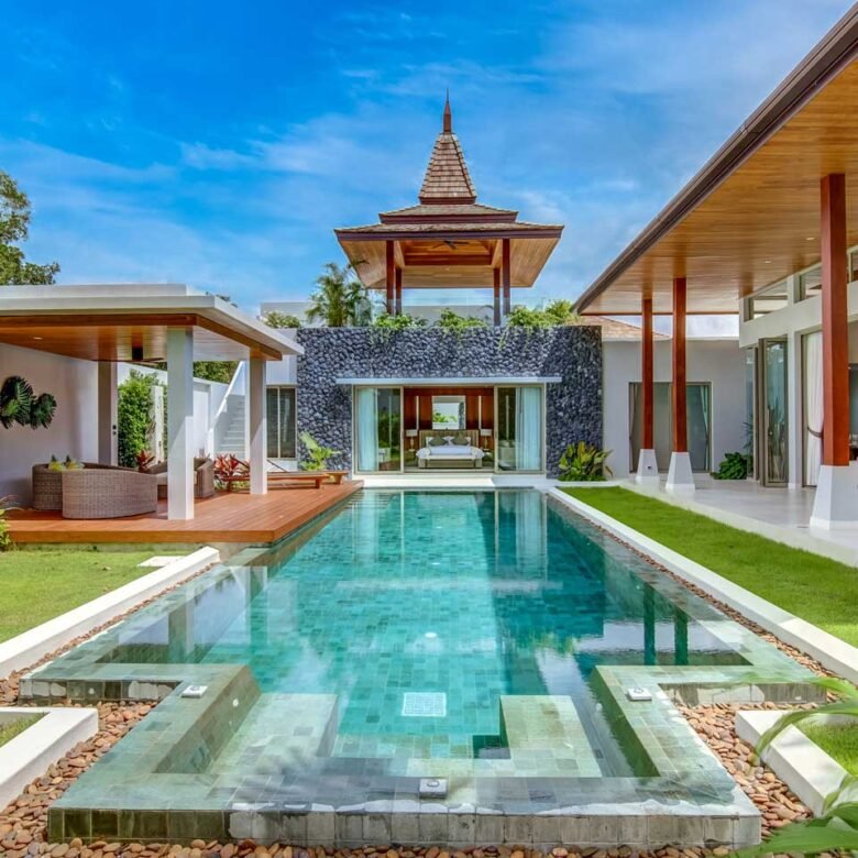 The stylish 3-bedroom Balinese style pool villa is part of a new villa development nestled in Pru Jampa, a quiet and new trendy residential area in Phuket, in easy access to Bangtao & Layan Beach.