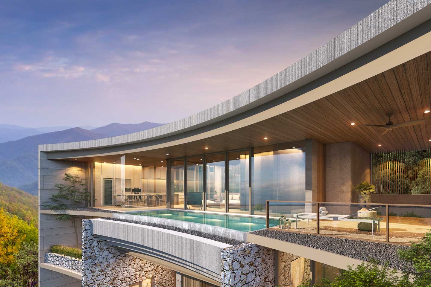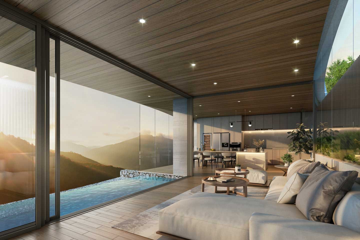With a unique slope on this land surrounded by mountains, the developer has chosen an award-winning and well-known architect to design each property.