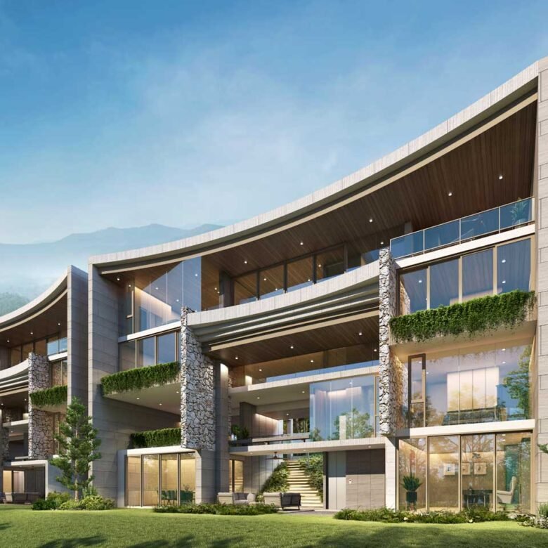 Each property boasts a majestic 3.5 floors facade with an infinity pool on top of it and panoramic mountain view.
