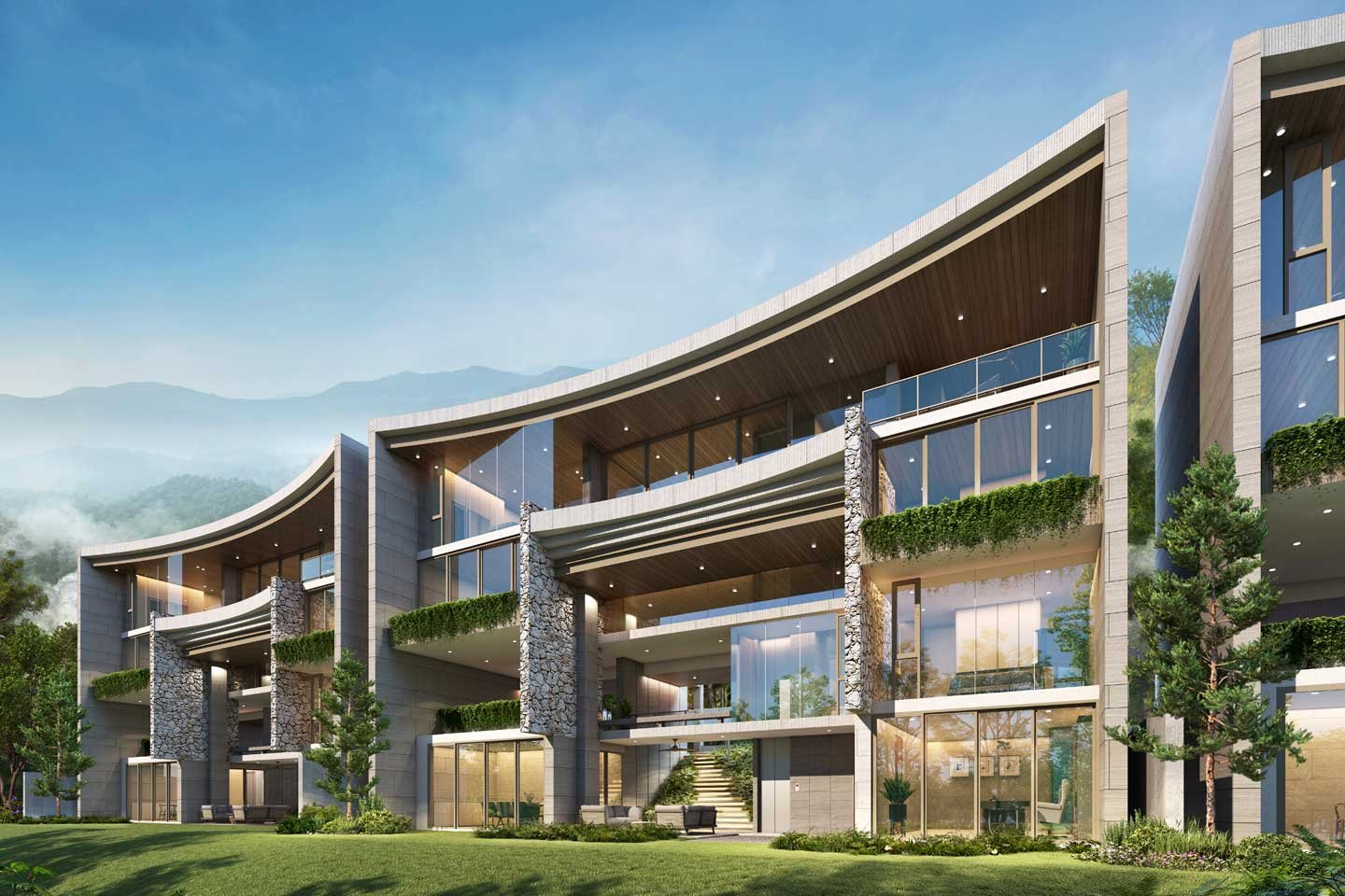 With a unique slope on this land surrounded by mountains, the developer has chosen an award-winning and well-known architect to design each property.