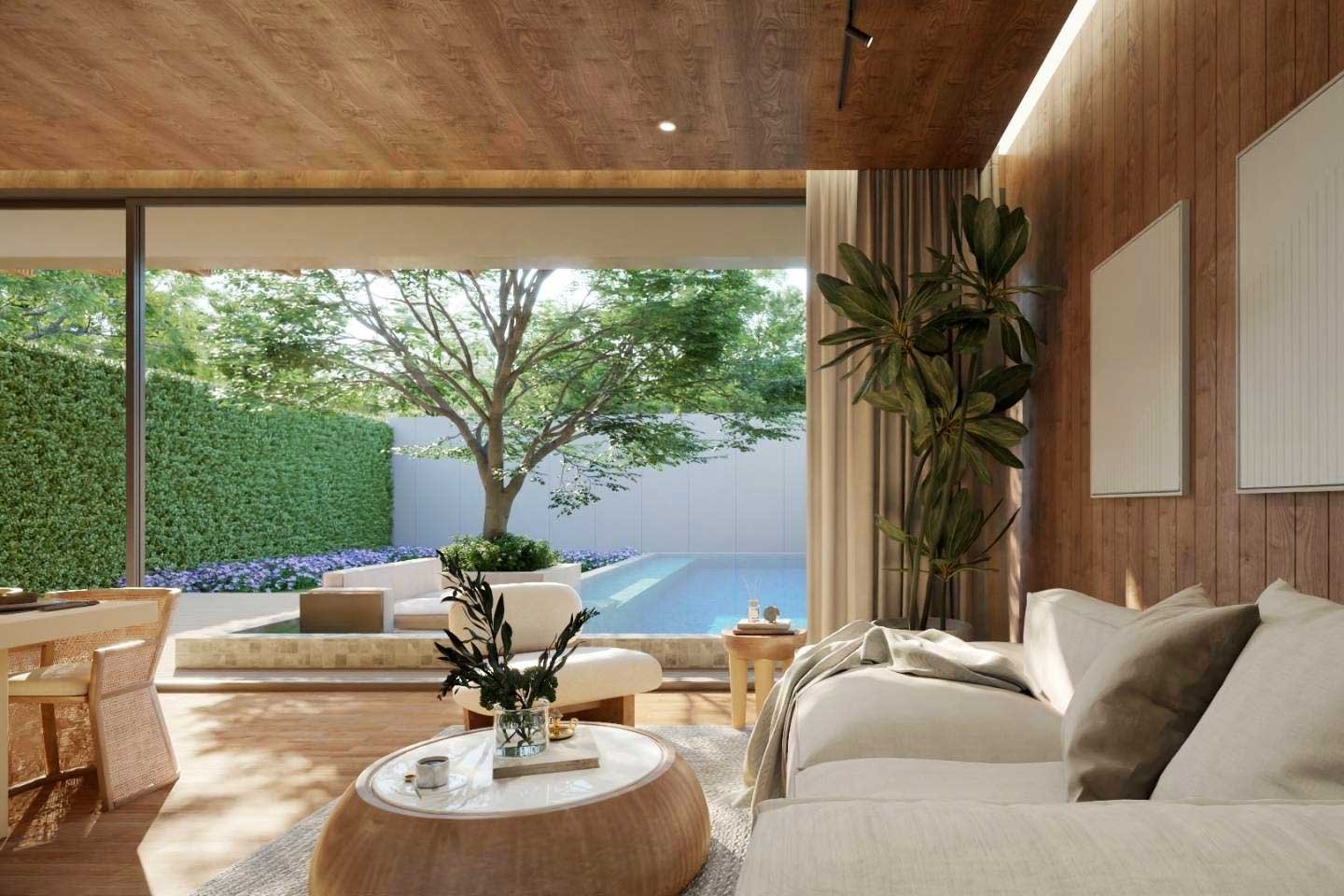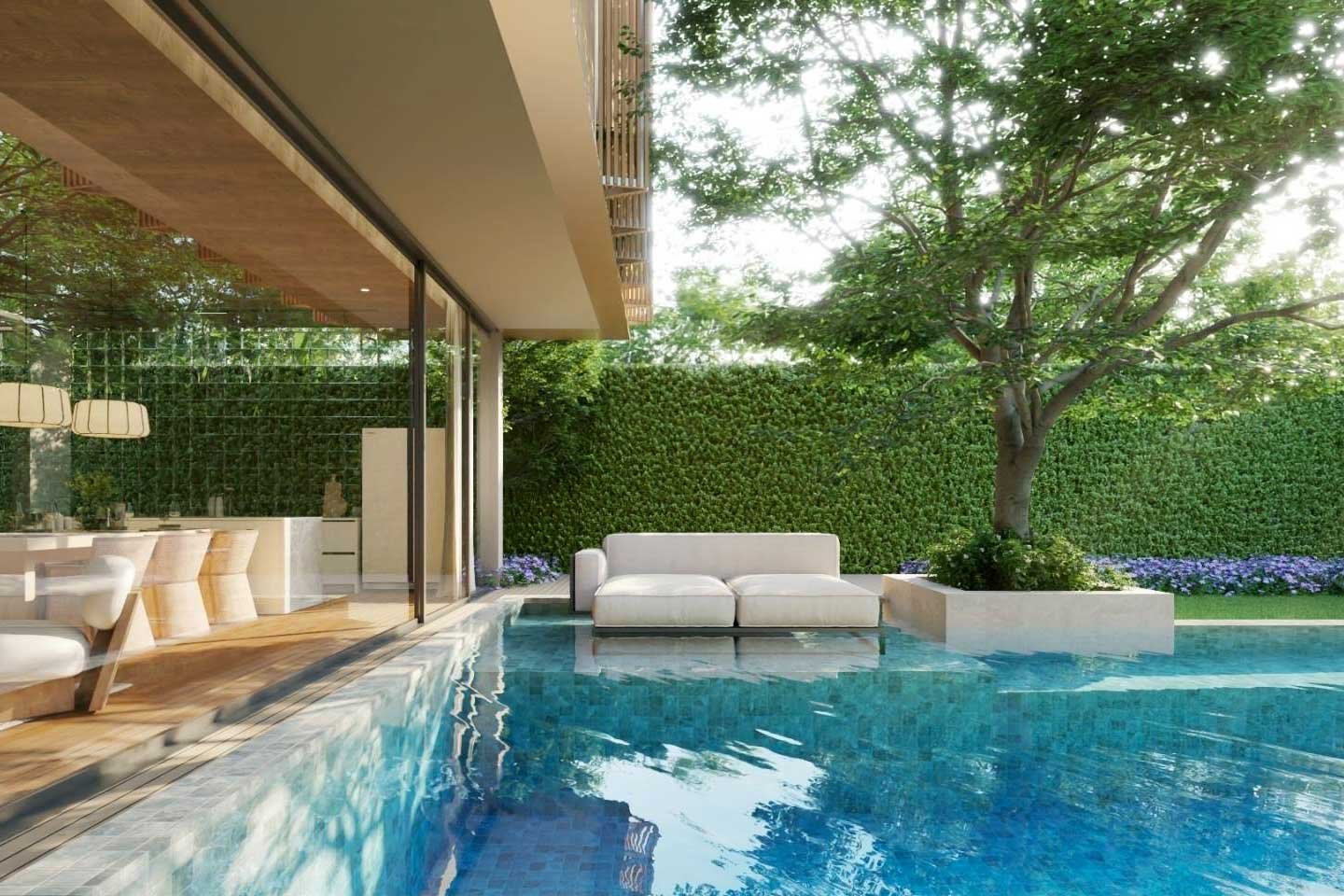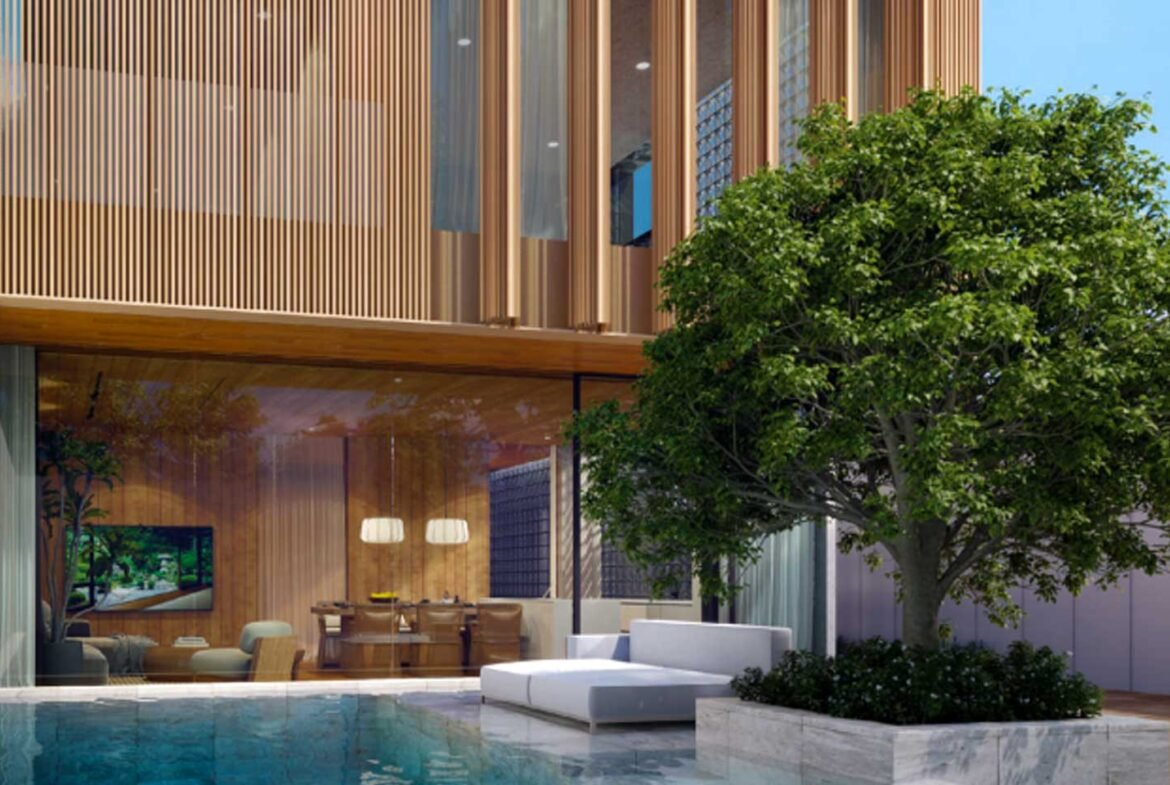 The property crafted over two floors features 3 designed bedrooms and its own 9×3 private pool with a total built-up area of 271 sqm.