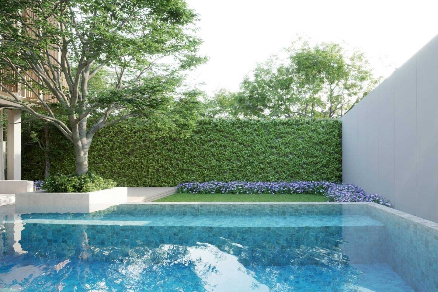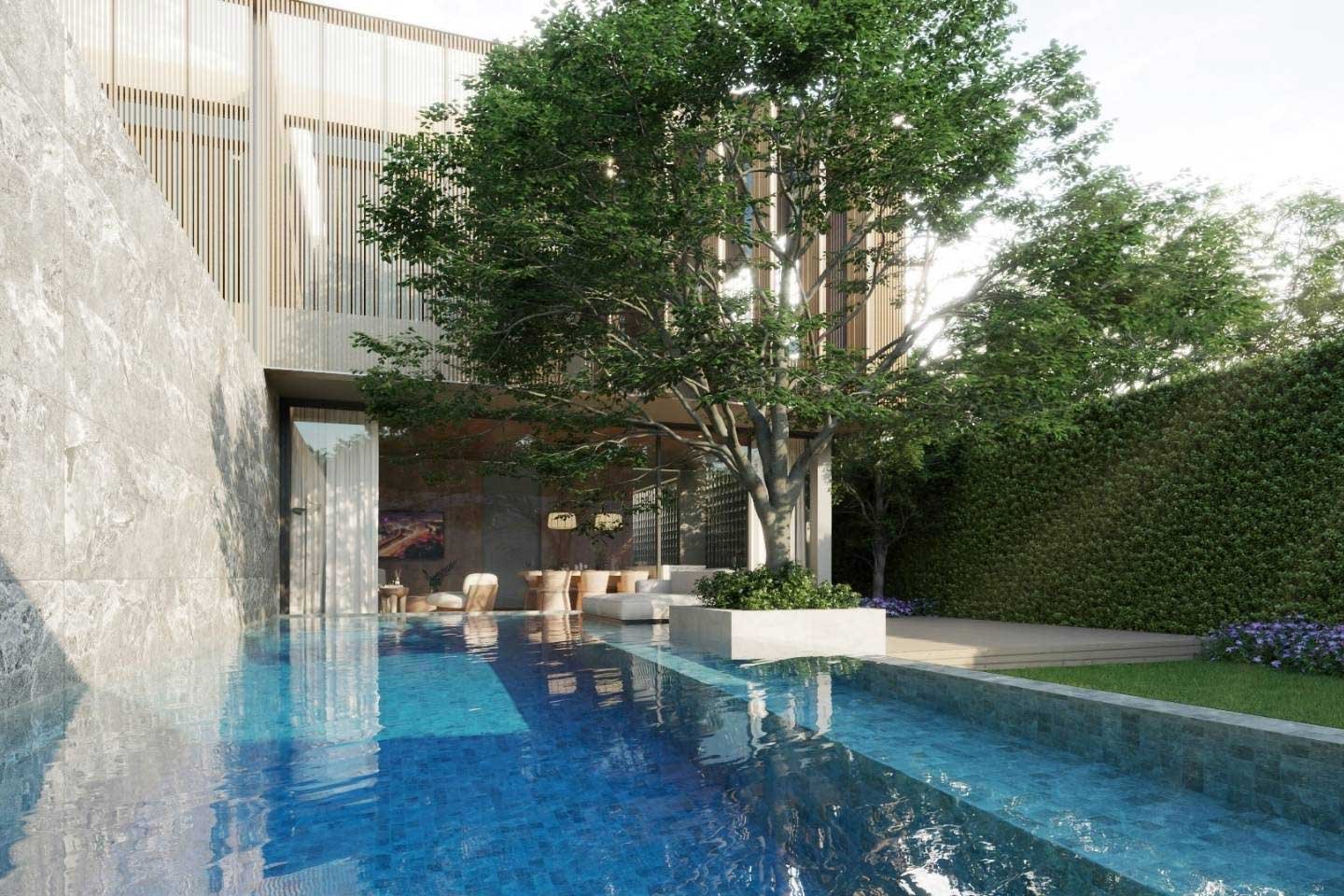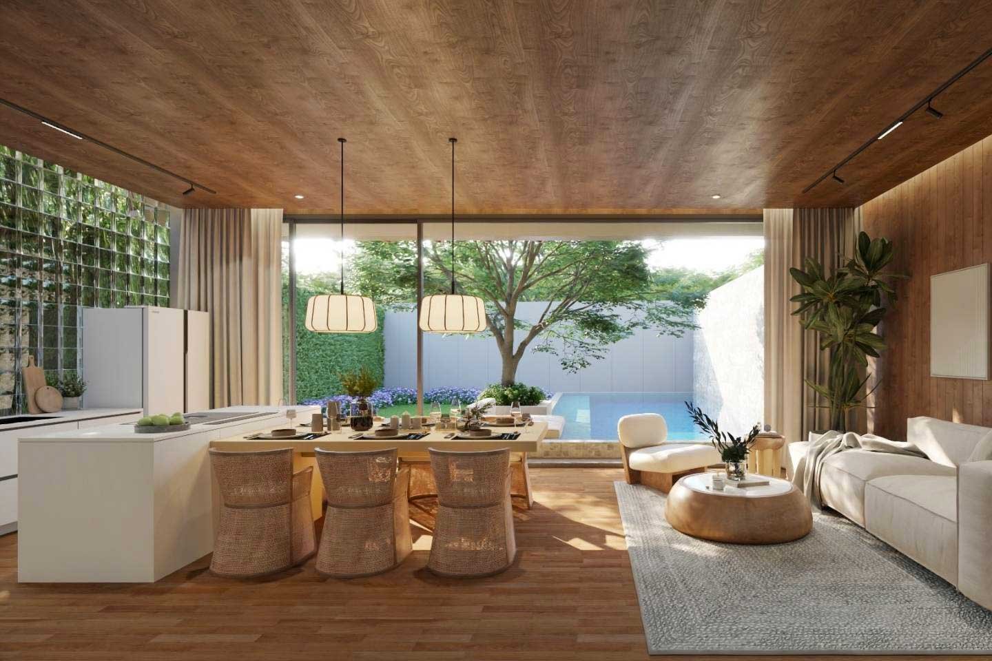 The property crafted over two floors features 3 designed bedrooms and its own 9×3 private pool with a total built-up area of 271 sqm.