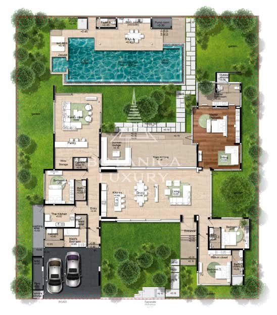 The ultra-luxury design is not only about aesthetics but also about lifestyle. These homes come equipped with every modern convenience, from smart home technology to private fitness centers and dedicated spaces for relaxation and entertainment. The sprawling grounds offer ample room for outdoor living, with lush gardens, outdoor kitchens, and luxurious terraces that make the most of the tropical climate.