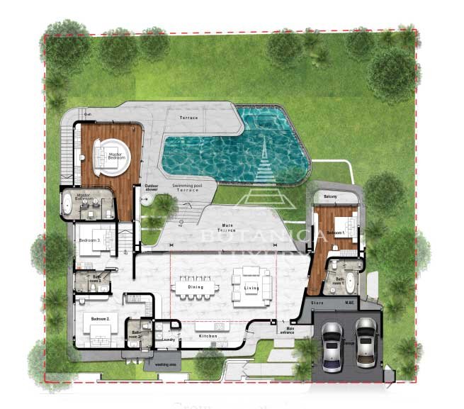 This stunning villa is the epitome of sophisticated living. With four spacious bedrooms and four lavish bathrooms, it’s the ideal space for families or individuals who desire both room to breathe and a sense of intimacy. The expansive living areas are perfect for entertaining guests or enjoying quiet family time, with seamless indoor-outdoor flow that takes full advantage of the surrounding tropical beauty.