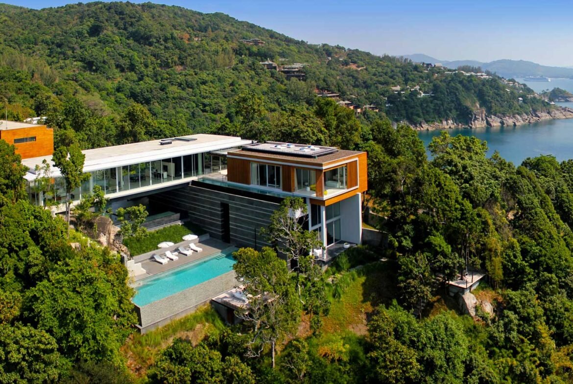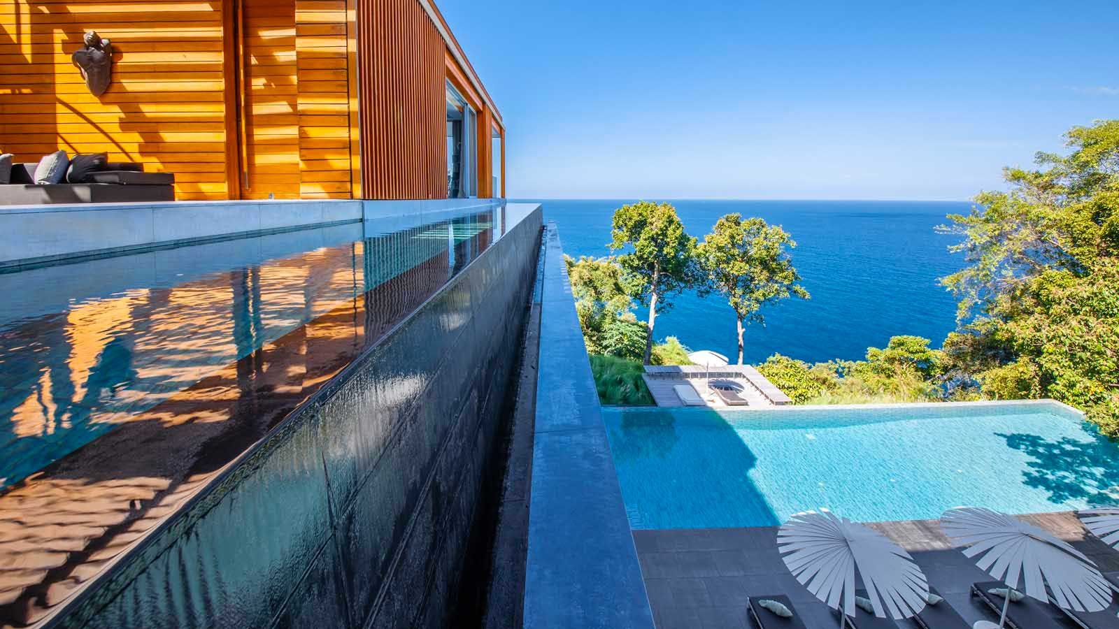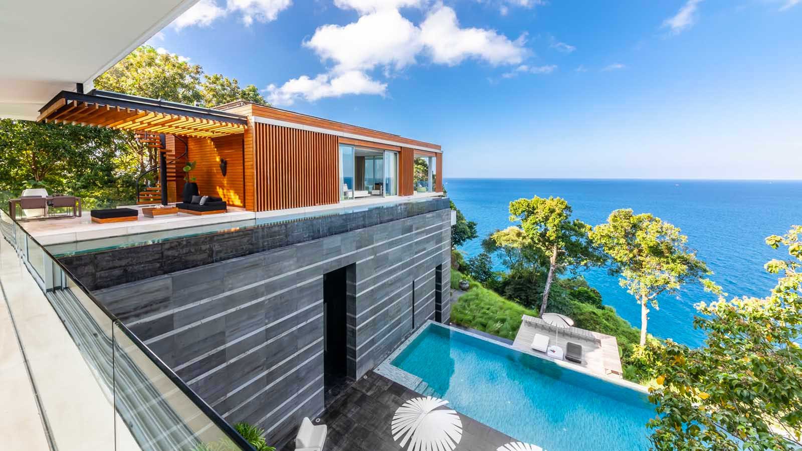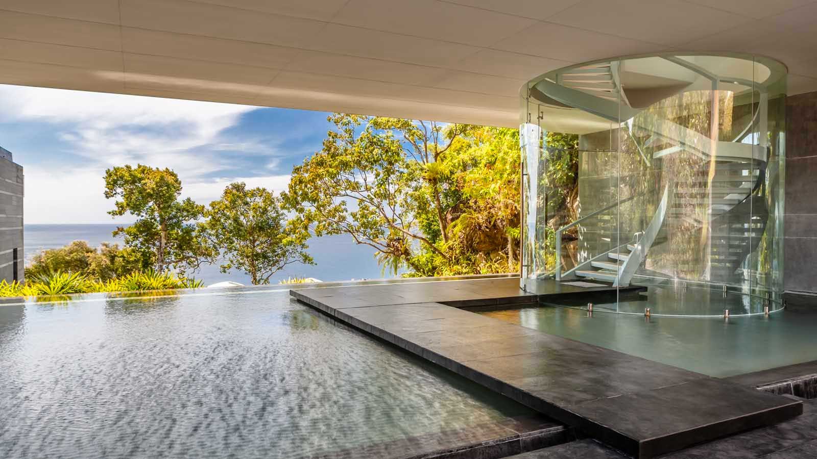 The exclusive luxury villa is certainly the apogee of modern Phuket oceanfront villa design. Big bold, linear lines and large glass expanses overlooking the Andaman sea, set the scene of a design that seems to befit a James Bond Movie set. Amongst many who have visited it is even known as, “The James Bond Villa’.