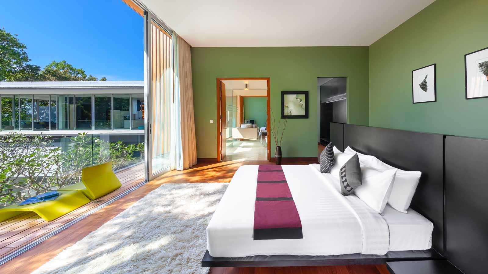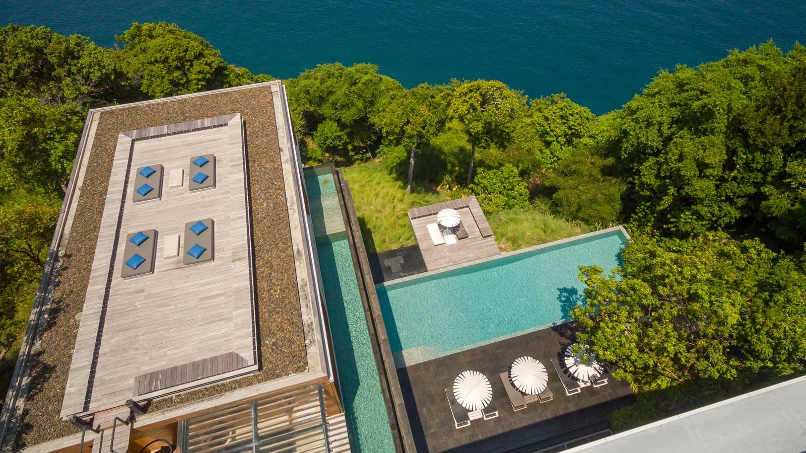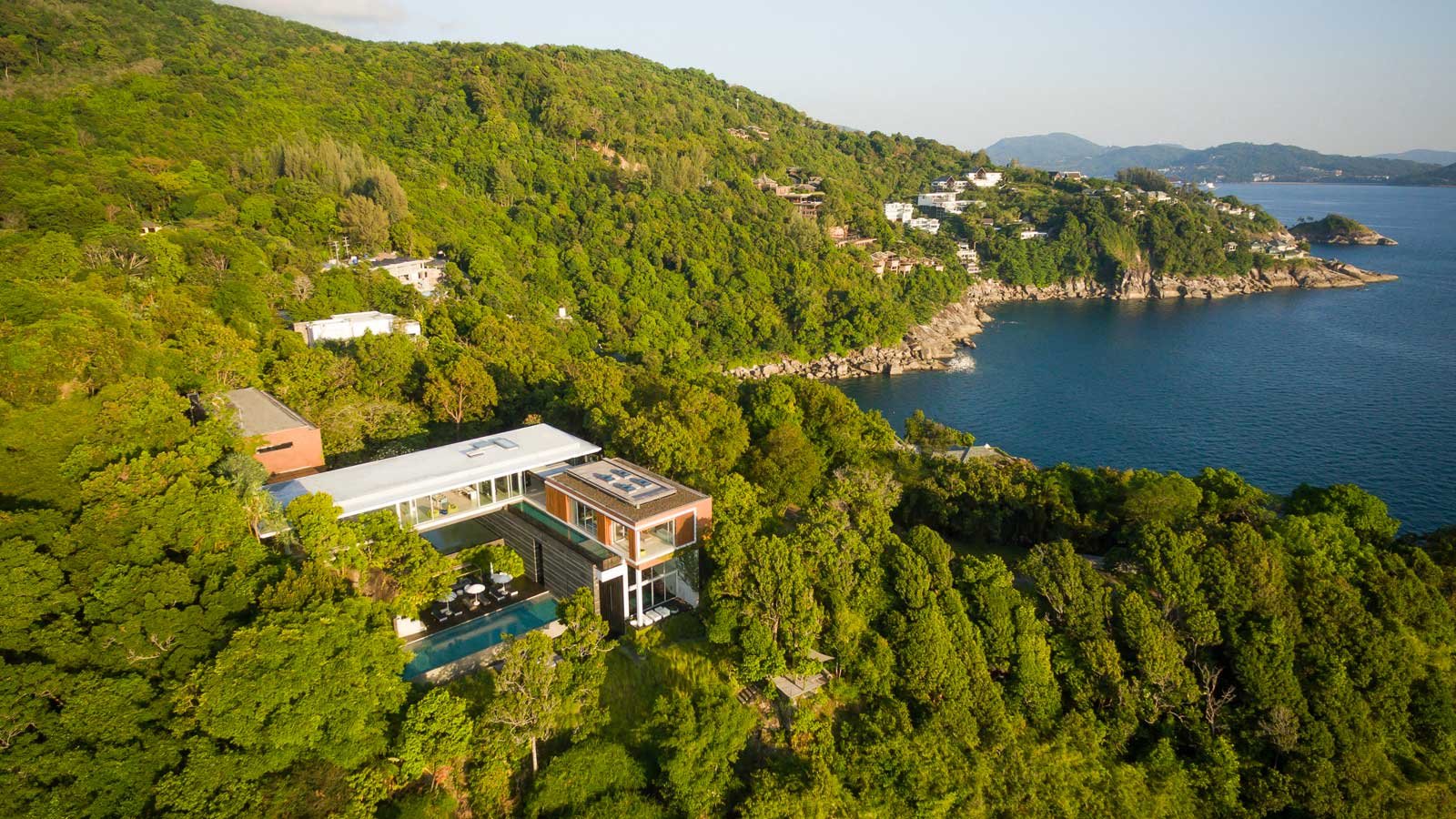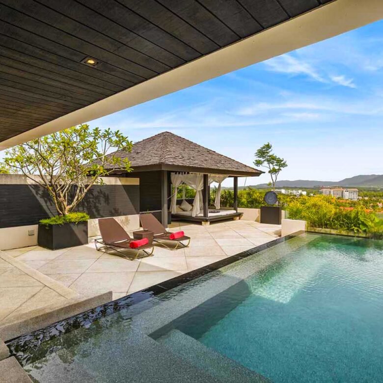 The exclusive luxury villa is certainly the apogee of modern Phuket oceanfront villa design. Big bold, linear lines and large glass expanses overlooking the Andaman sea, set the scene of a design that seems to befit a James Bond Movie set. Amongst many who have visited it is even known as, “The James Bond Villa’.