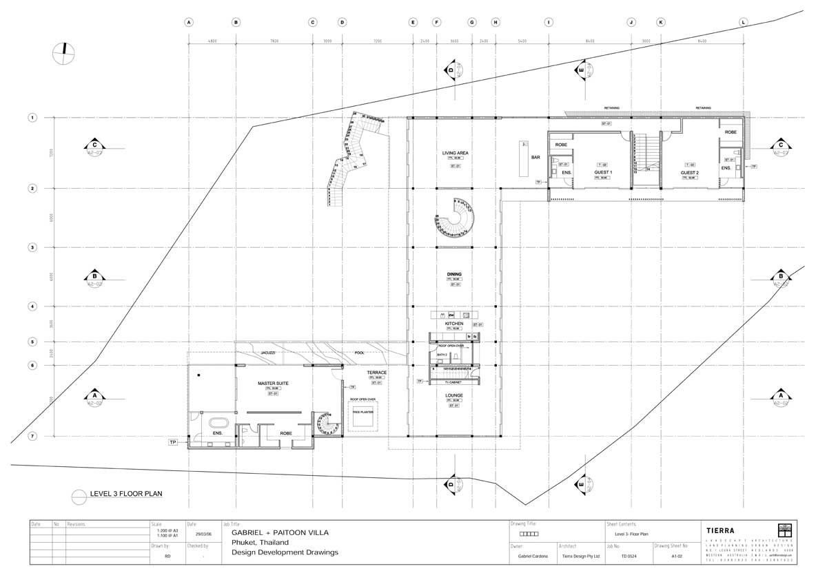 Situated on a cliff top, the villa faces westwards across the open ocean to glorious sunsets and is securely and privately situated at the end of a magnificent treelined boulevard of mature tropical trees within a spacious private residential estate set along famous Phuket Millionaires Mile. Such is the position, that one can gain 360 Degree views from the property especially the iconic sunset roof terrace, which must rank as one of Phuket’s finest view points.