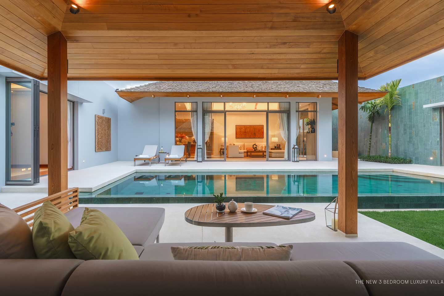 The newly designed 3-bedroom Luxury Balinese style villa is part of the latest villa development in Pru Jampa area, a quiet and new trendy residential location in Phuket in easy access to Bangtao & Layan Beach.