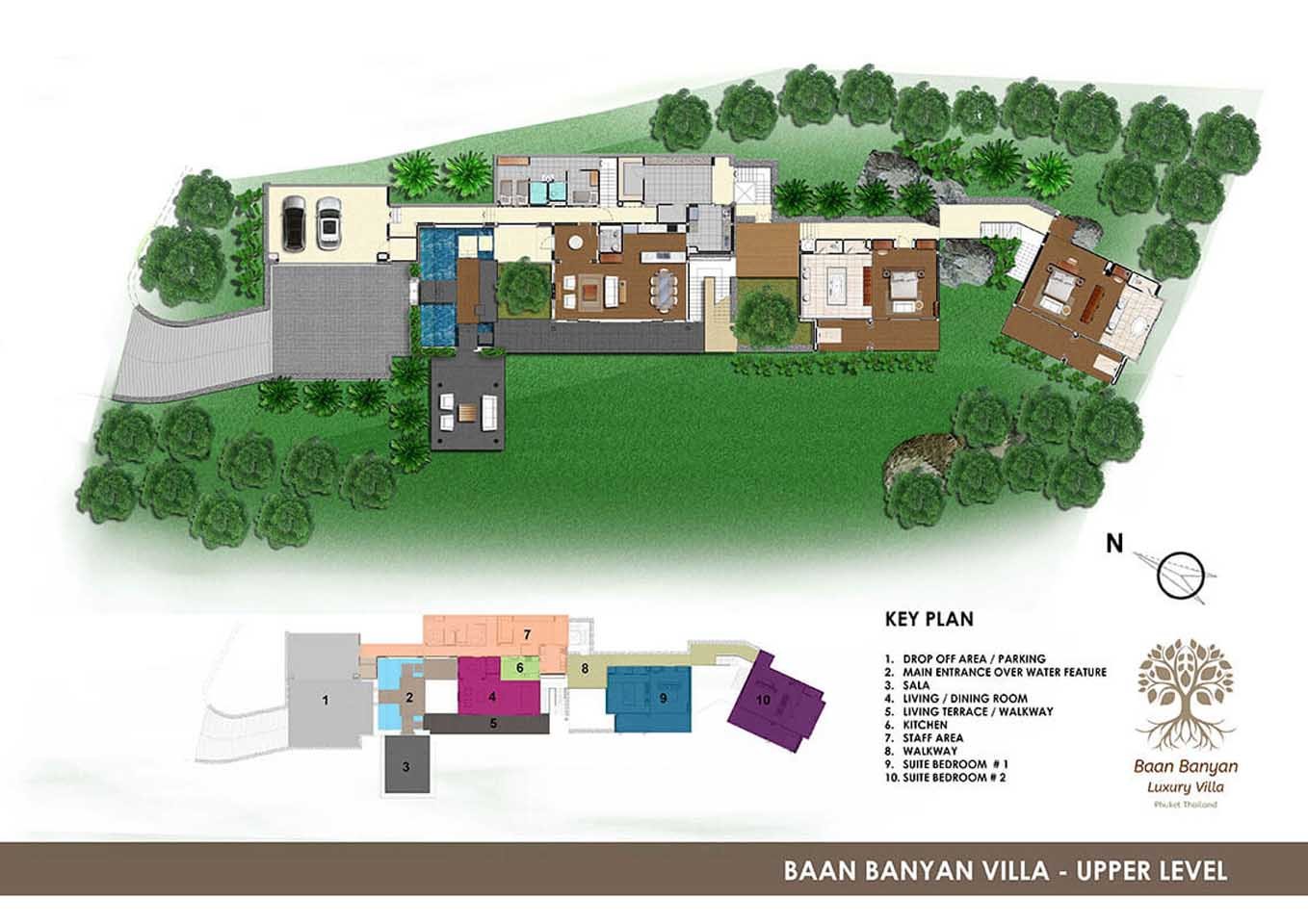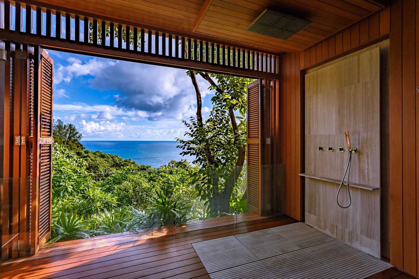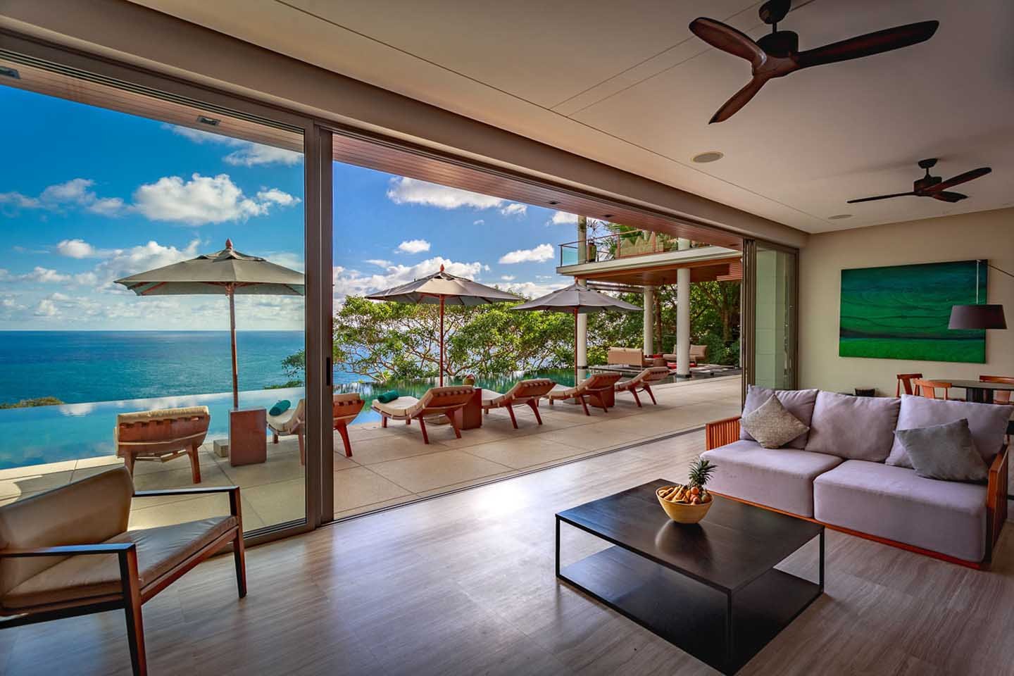 A striking 19-meter infinity-edge pool seamlessly blends with the azure horizon, creating an idyllic oasis for relaxation. The villa’s interiors exude elegance, featuring lofty ceilings and a harmonious fusion of hardwoods and natural stone. Privately nestled within the prestigious Waterfall Cove Estate, the luxury villa marries contemporary aesthetics with traditional Asian charm, seamlessly integrating into its untouched tropical surroundings.