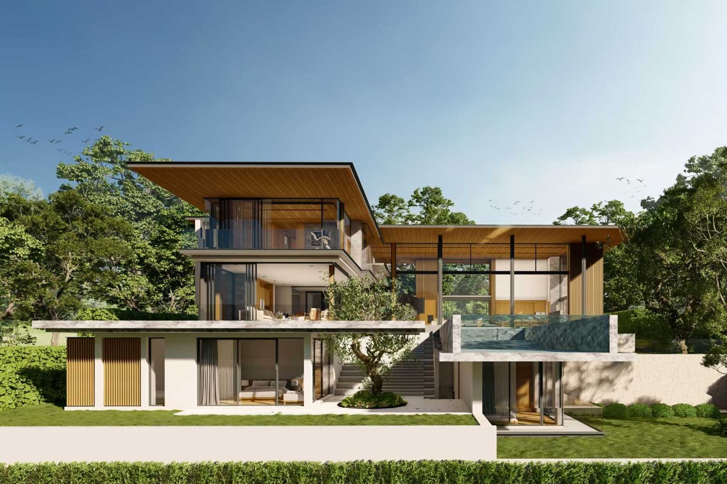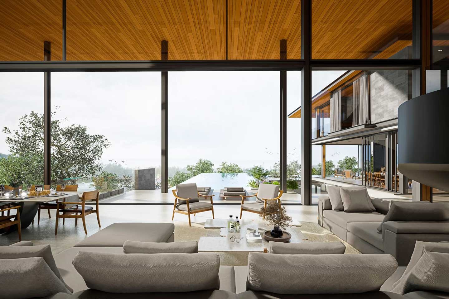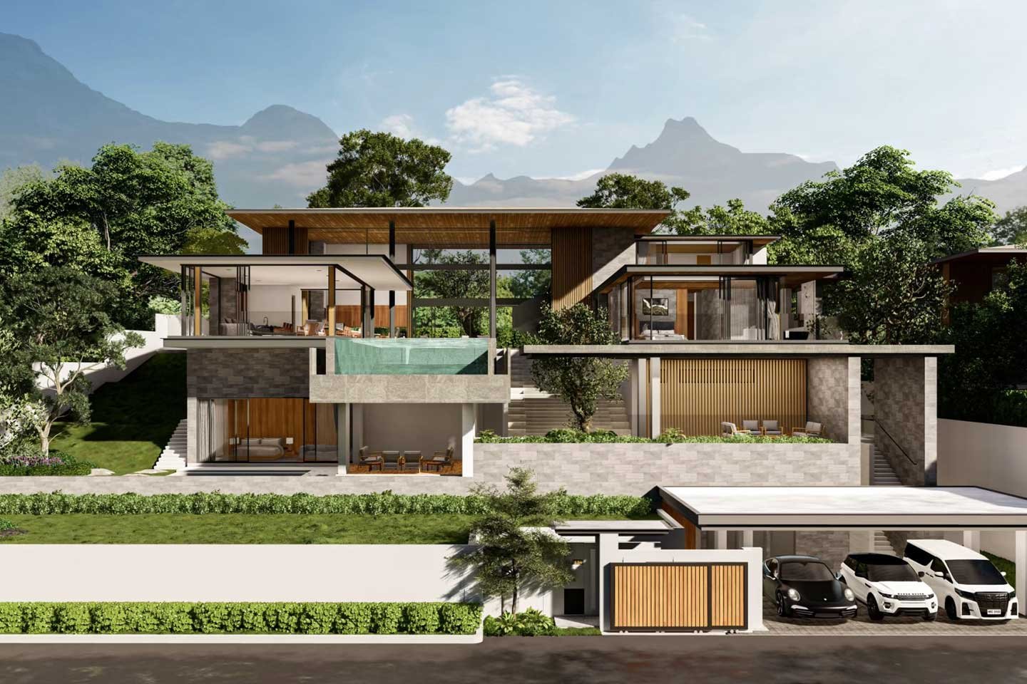 For those who love to entertain, the outdoor spaces are just as lavish. Expansive terraces, infinity pools, and custom-designed outdoor lounges create a perfect setting for hosting guests or simply enjoying a peaceful moment surrounded by nature’s beauty. With breathtaking views of the surrounding mountains and ocean, this design makes every day feel like a luxurious escape.