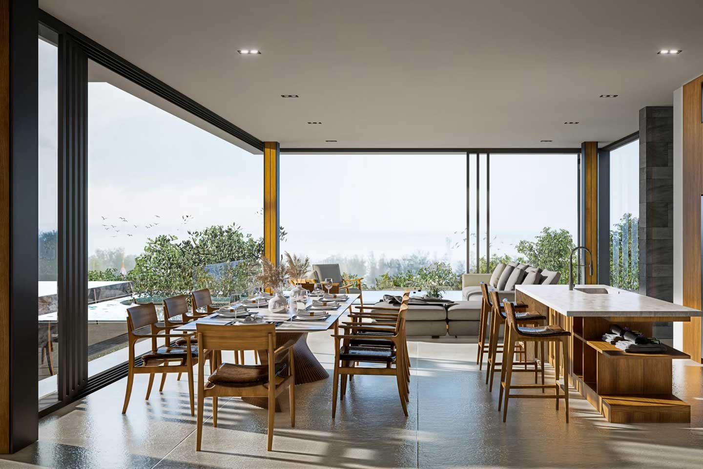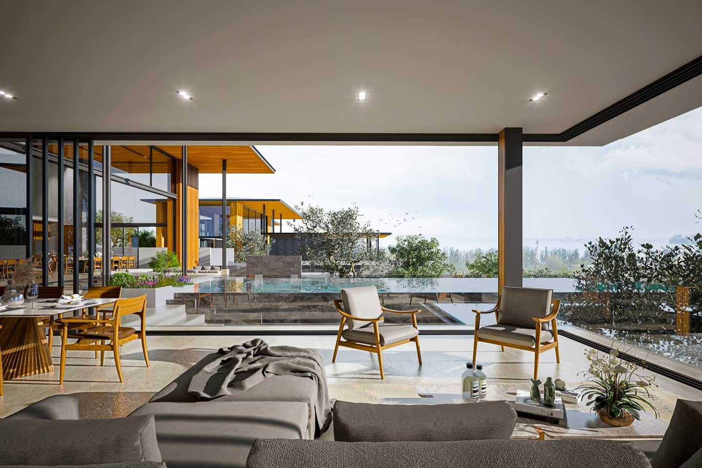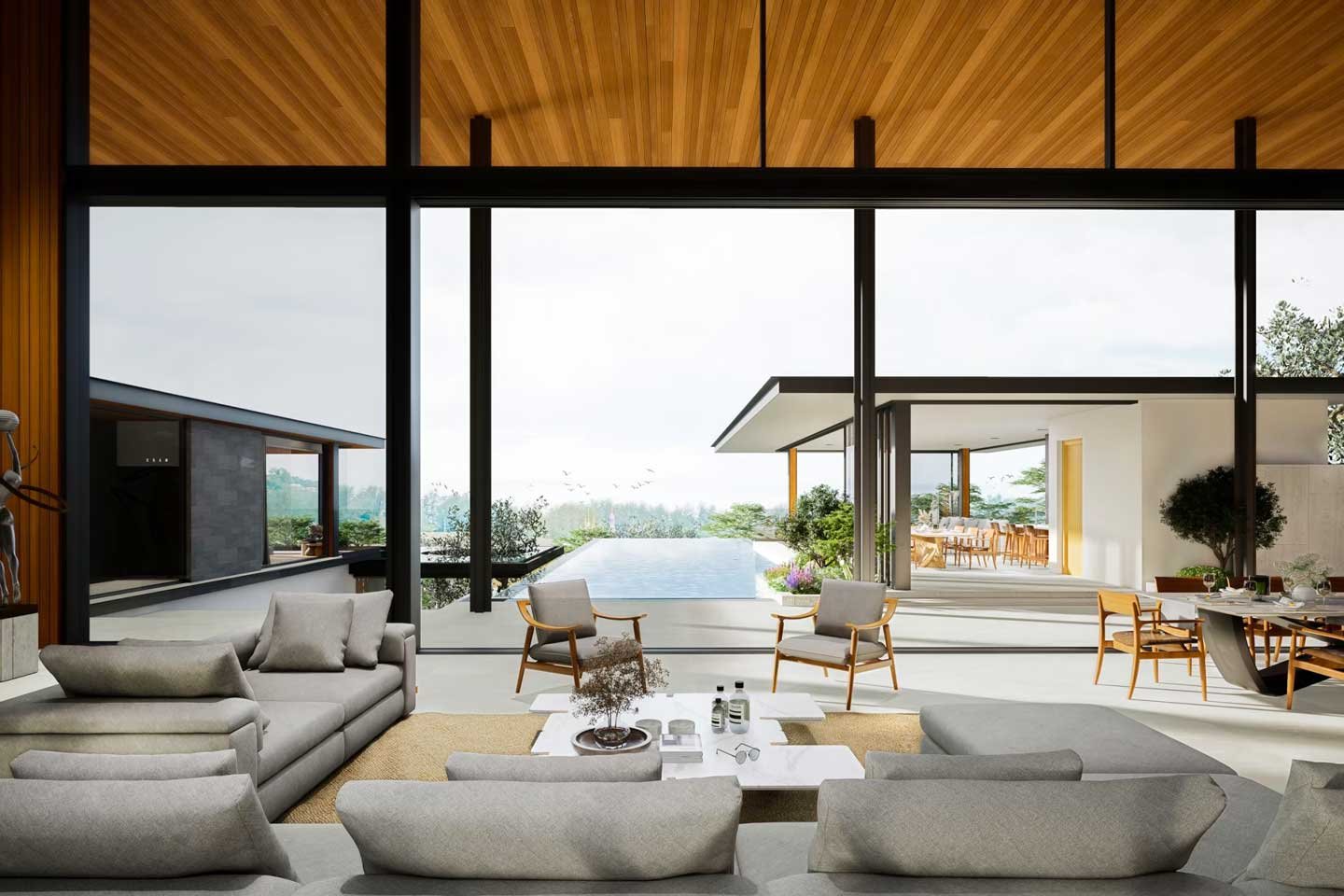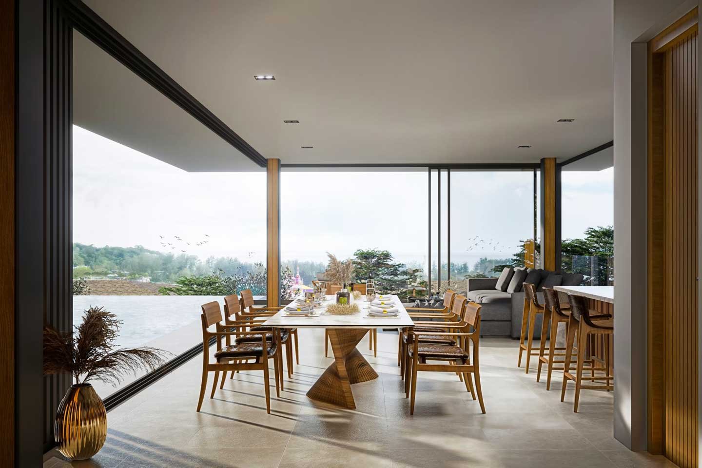 For those who love to entertain, the outdoor spaces are just as lavish. Expansive terraces, infinity pools, and custom-designed outdoor lounges create a perfect setting for hosting guests or simply enjoying a peaceful moment surrounded by nature’s beauty. With breathtaking views of the surrounding mountains and ocean, this design makes every day feel like a luxurious escape.