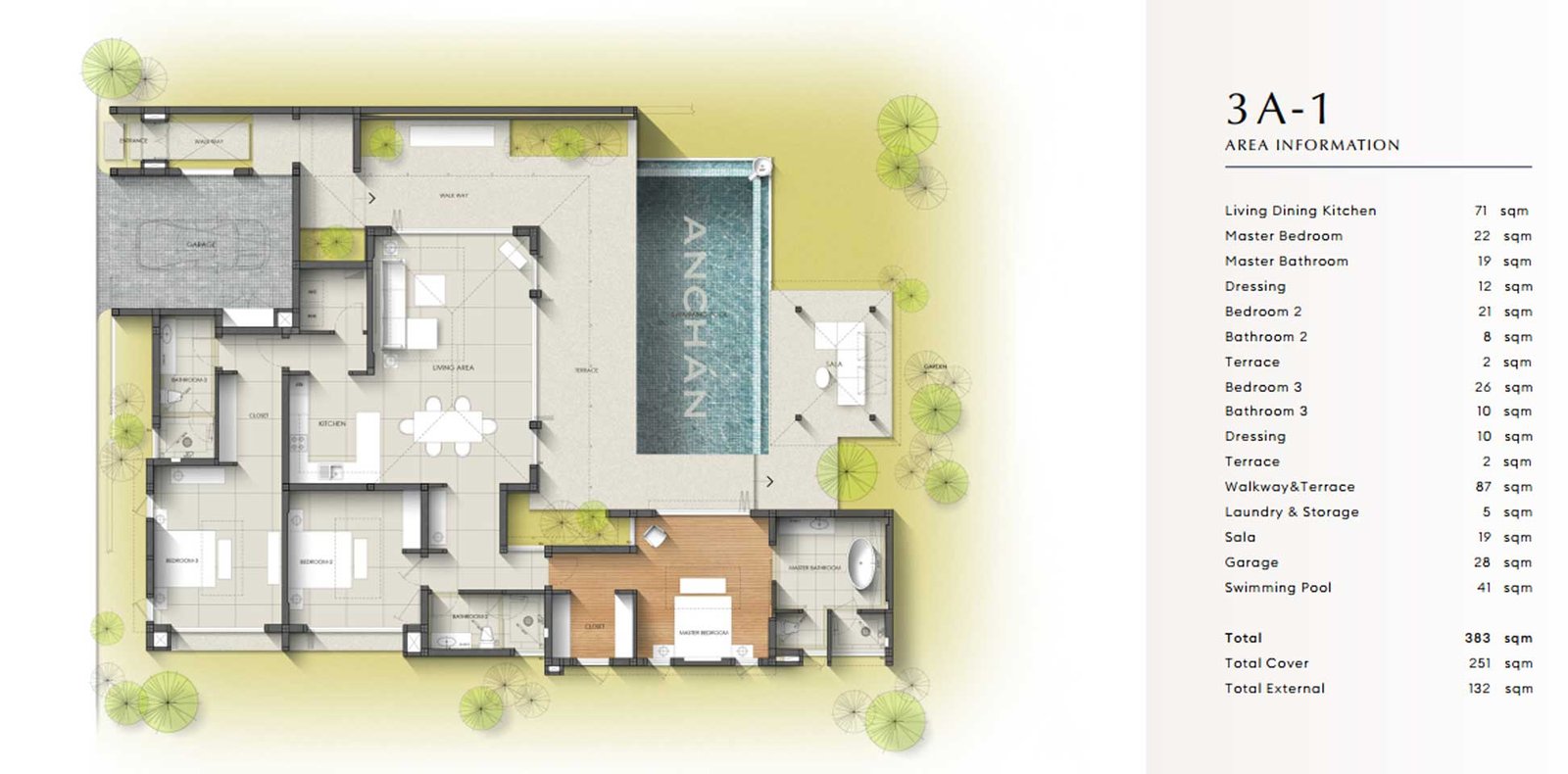 The villa layout has been carefully designed to maximize privacy, comfort, and functional living space.
