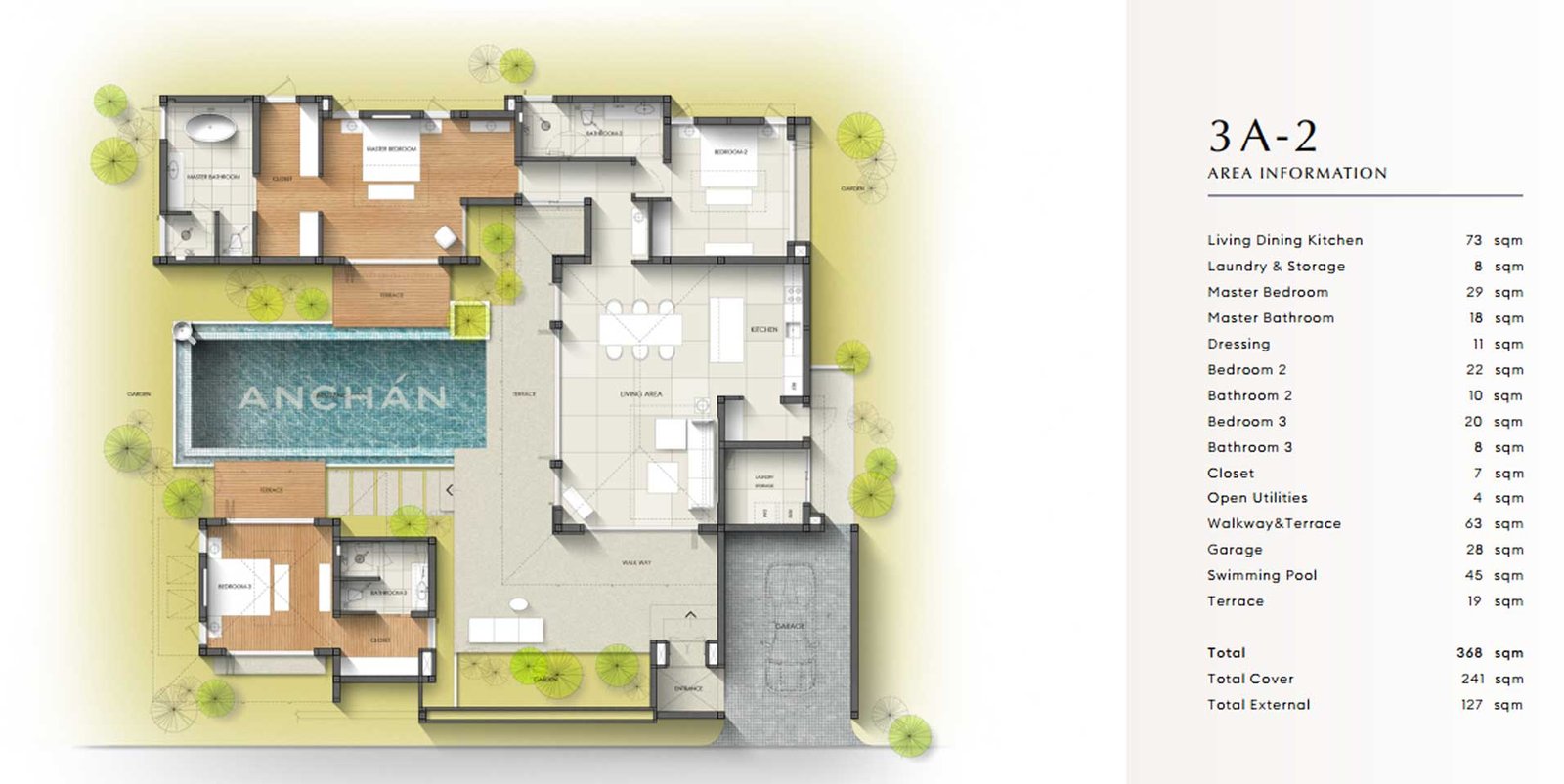 With built-up areas ranging from approximately 350 to 420 square meters and land plots typically between 500 and 750 square meters, the villa offers generous indoor and outdoor living areas designed to embrace Phuket’s tropical lifestyle.