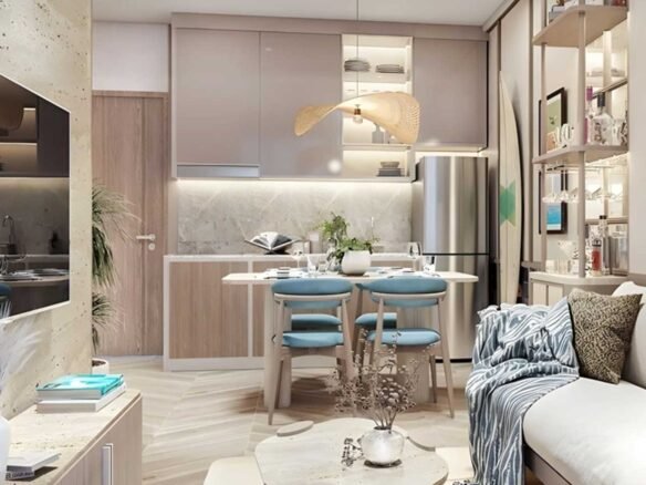 Units range from compact 1-bedroom apartments (around 33-47 sqm) to spacious 2-bedroom options (50-70 sqm) and impressive penthouses (135-139 sqm). Expansive private balconies are a signature feature, perfect for morning coffee or evening sundowners while watching the horizon. Clean lines, natural light, and tropical integration create homes that feel airy and connected to the environment.