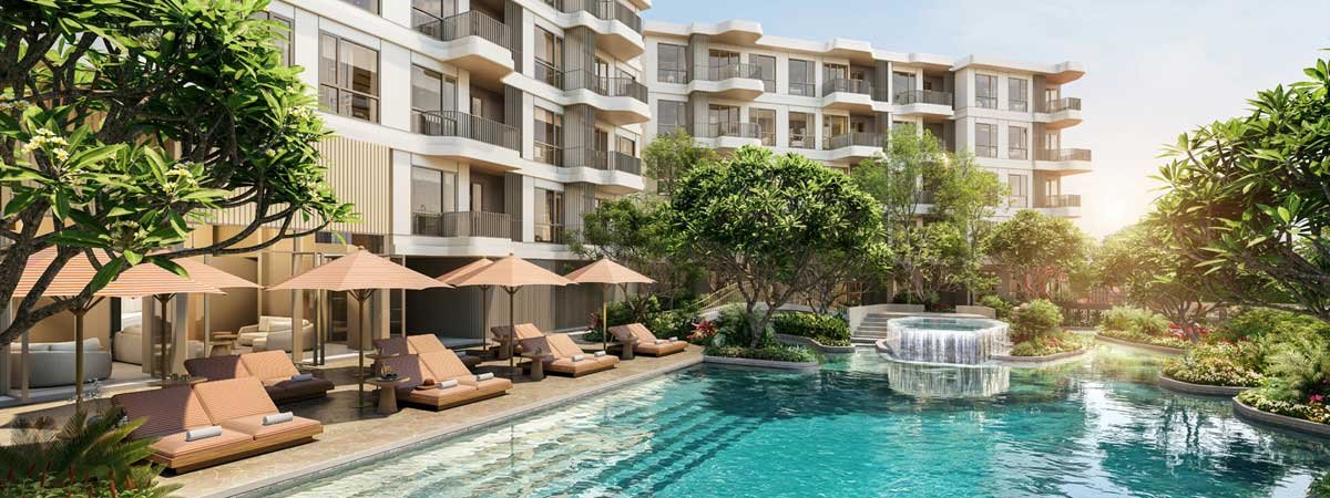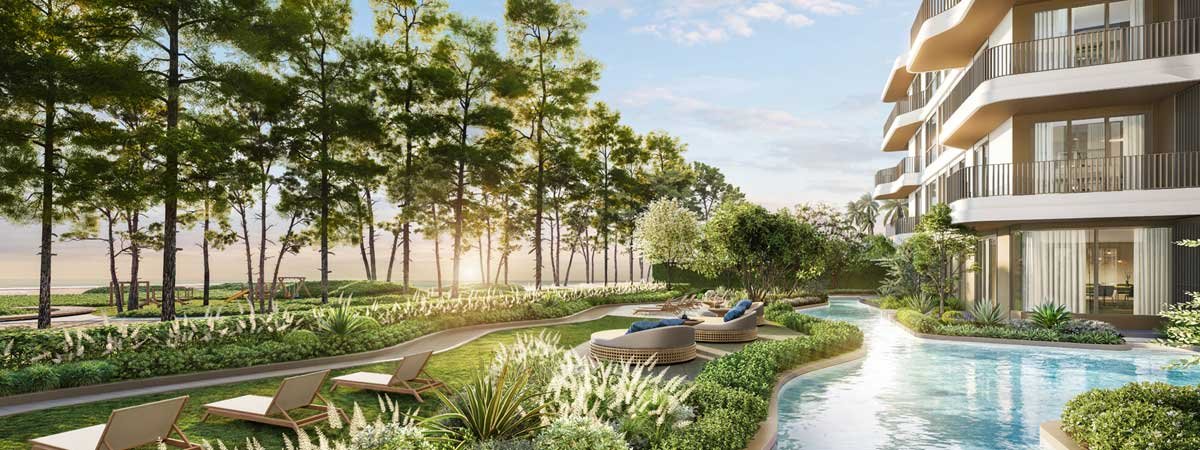 This isn’t just a place to stay—it’s a full lifestyle. Over 13,000 sqm of communal areas include multiple swimming pools (including a 250m lap pool and starry night pool), jacuzzis, fitness center, sauna, steam room, co-working space, kids’ areas, yoga pavilions, sandy lounges, and lush tropical gardens. Beachfront pavilions and relaxation zones let you unwind steps from the sand.